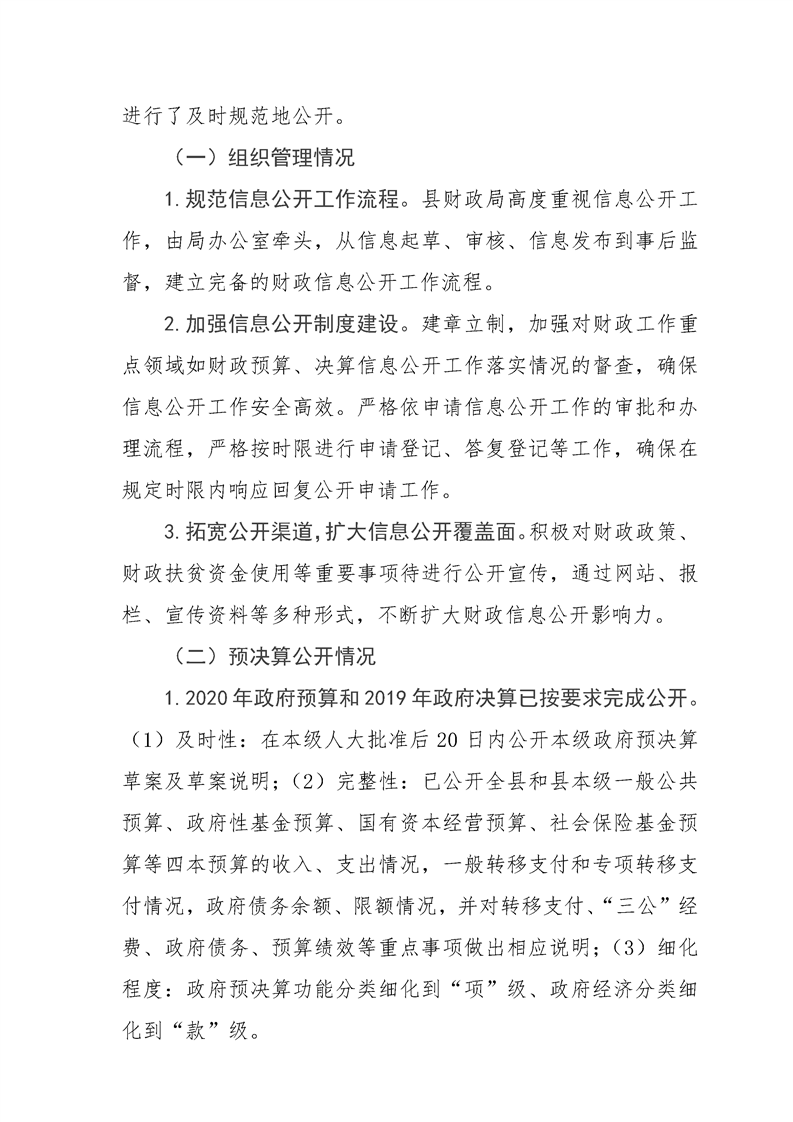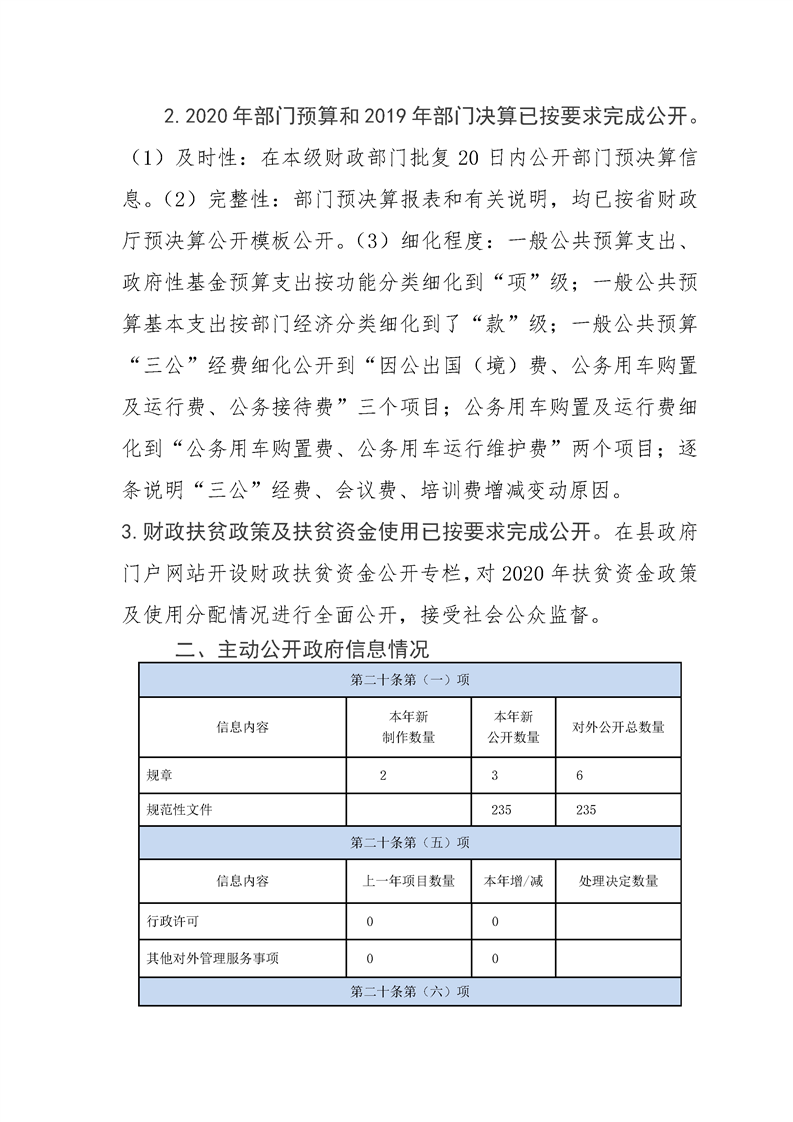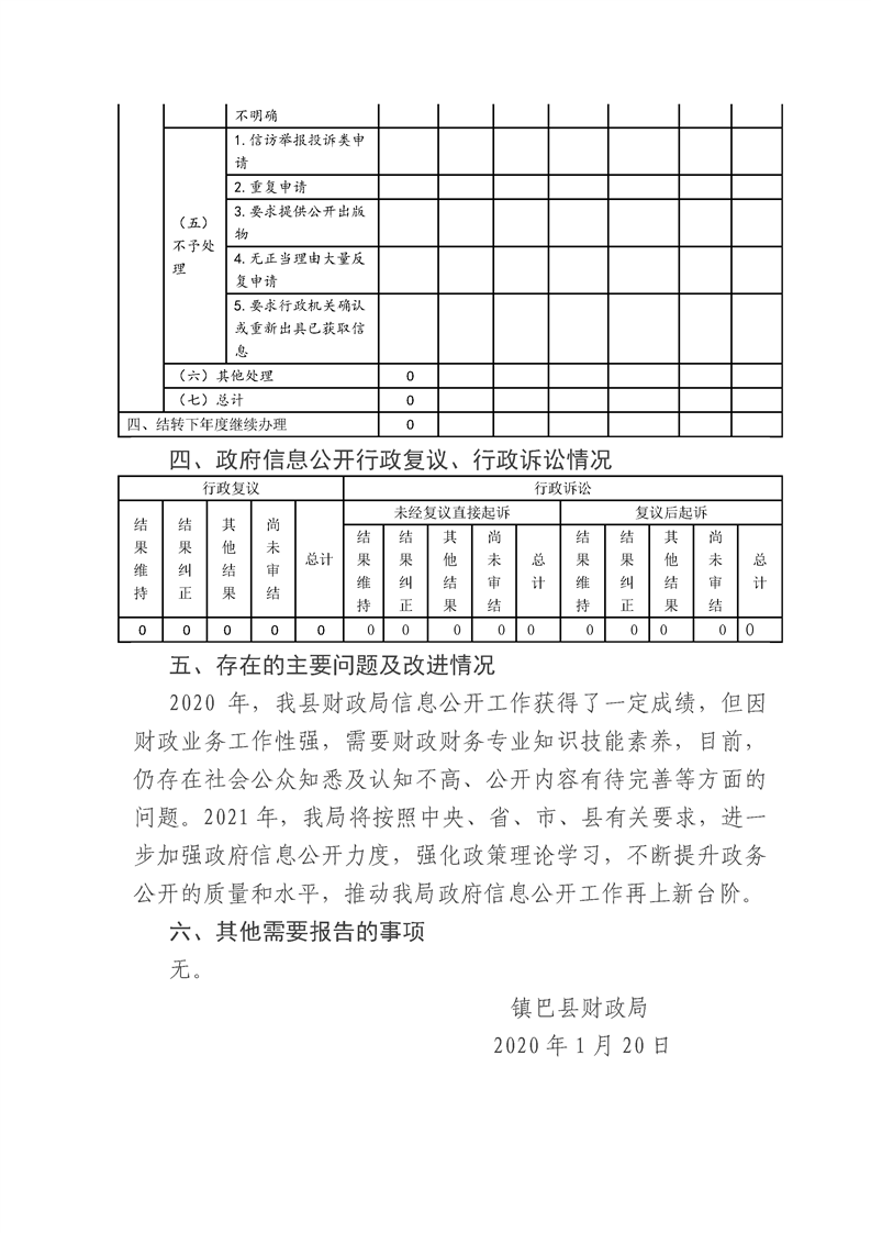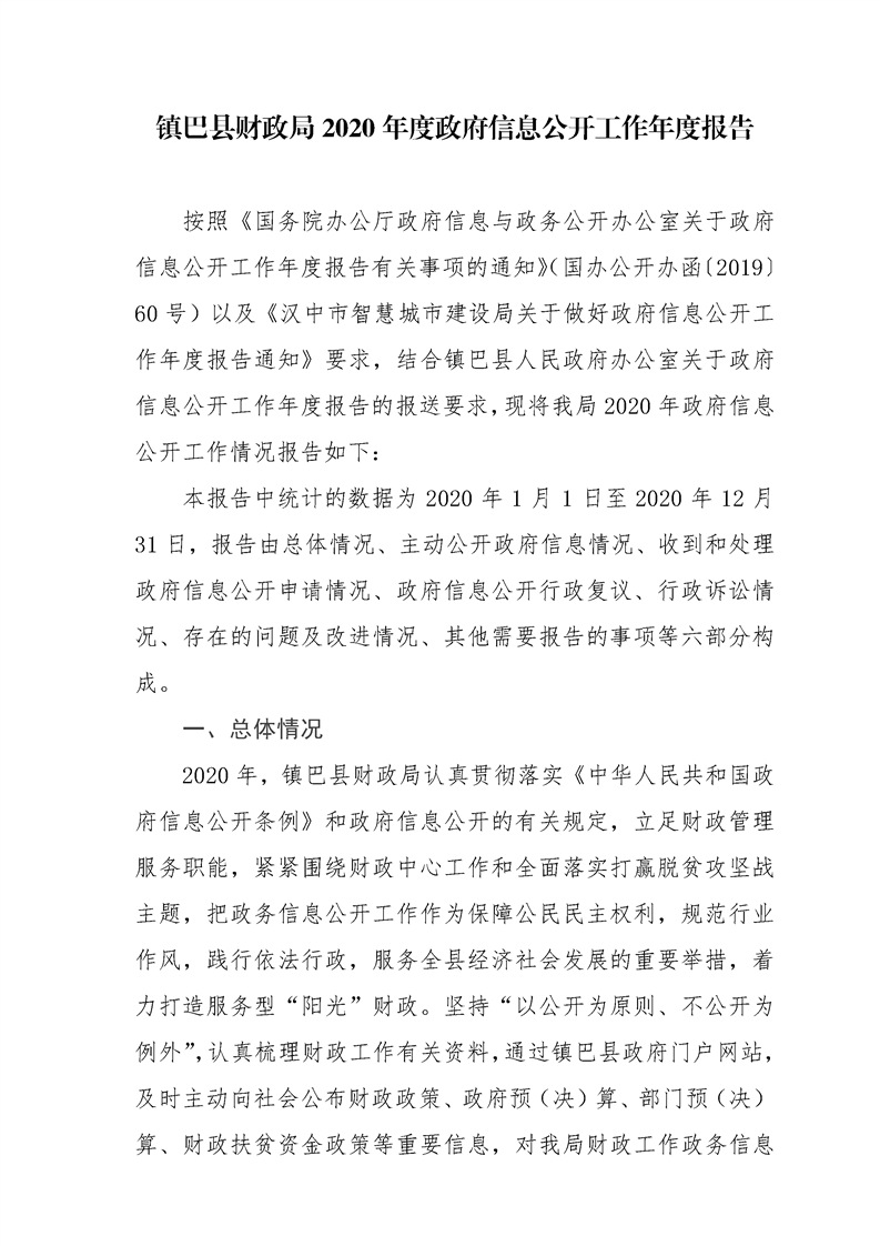 镇巴县财政局2020年度政府信息公开工作年度报告