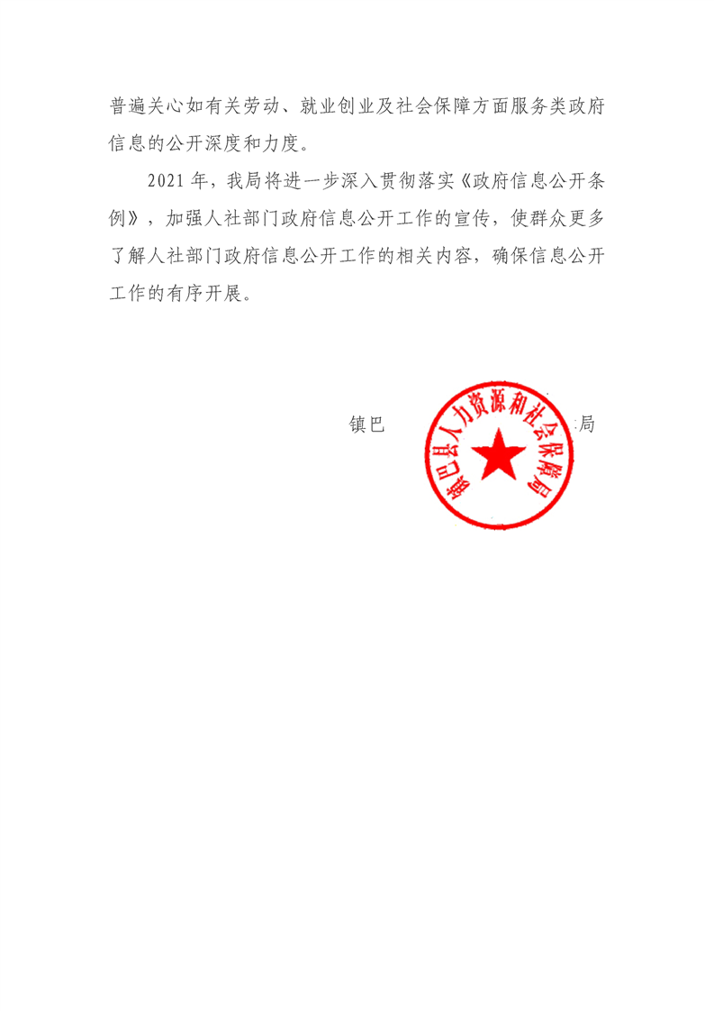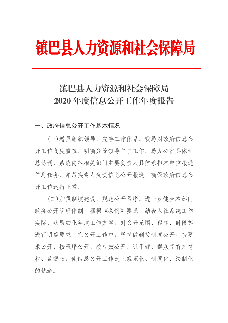 镇巴县人力资源和社会保障局2020年度信息公开工作年度报告