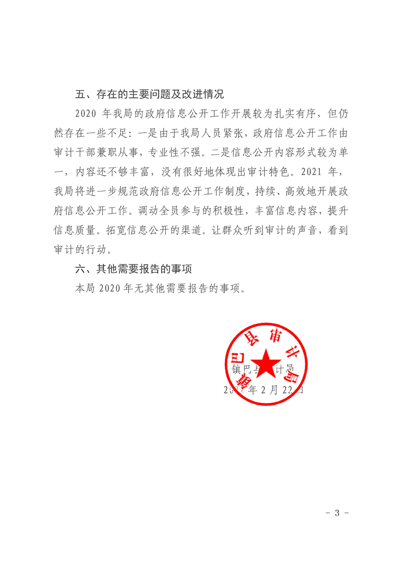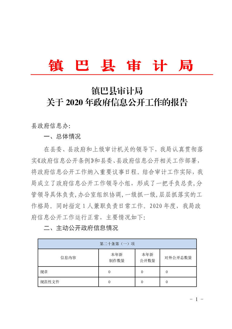 镇巴县审计局2020年度政府信息公开工作年度报告
