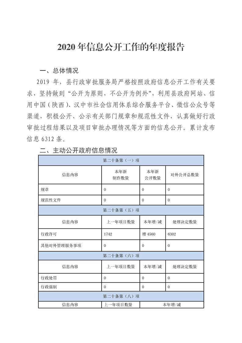 镇巴县行政审批服务局2020年度政府信息公开工作年度报告