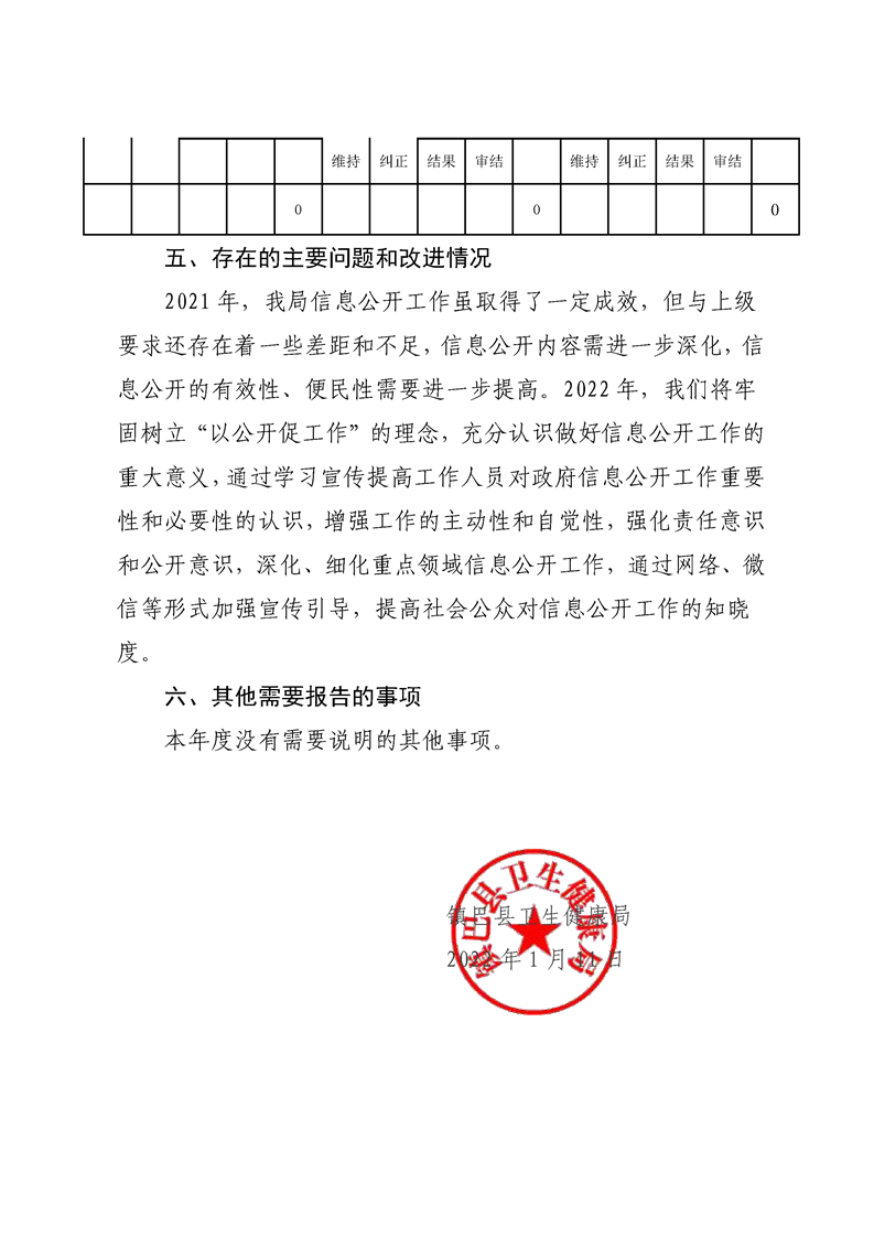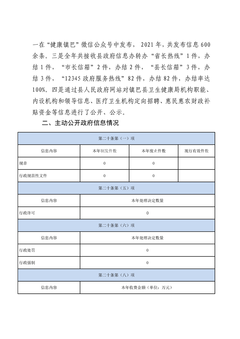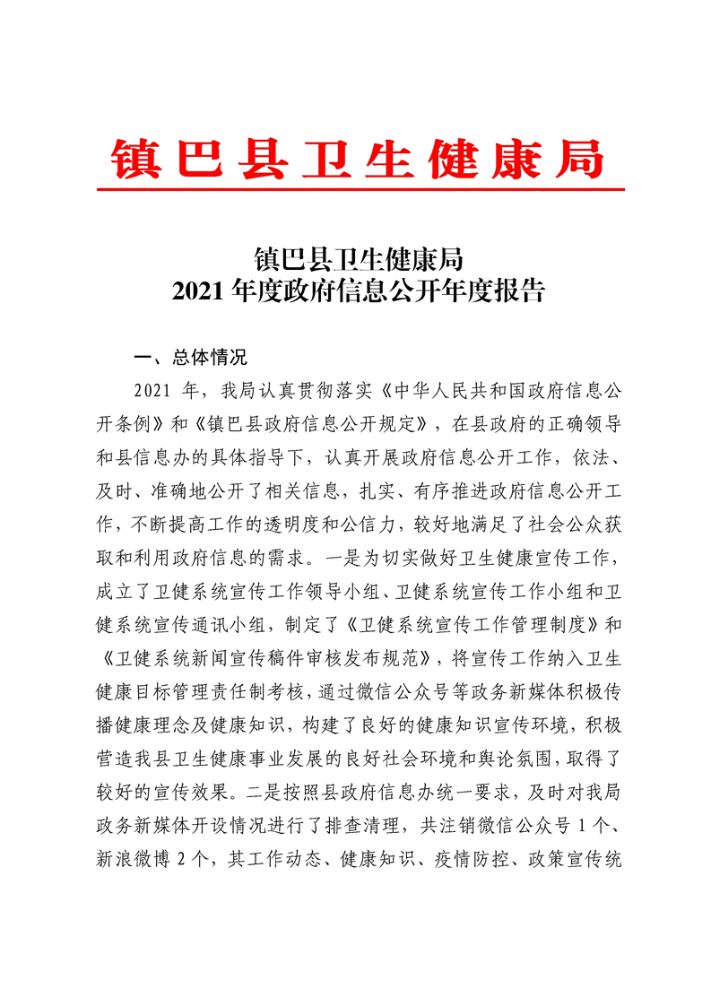 镇巴县卫生健康局2021年度政府信息公开年度报告