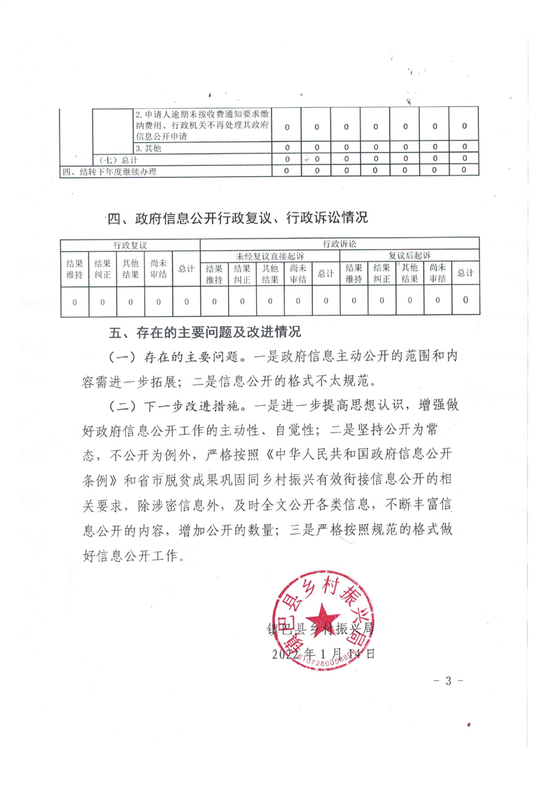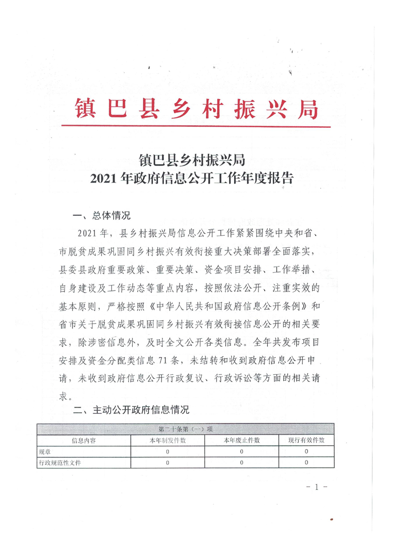 镇巴县乡村振兴局2021年度政府信息公开工作年度报告