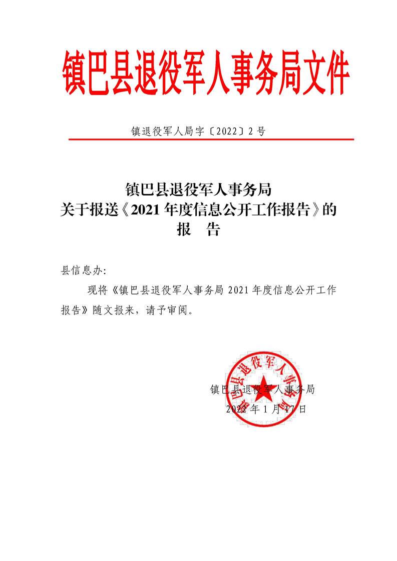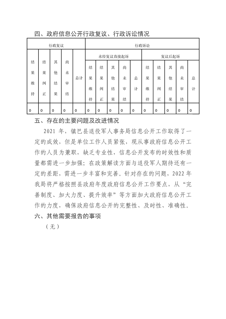 镇巴县退役军人事务局2021年度政府信息公开工作年度报告