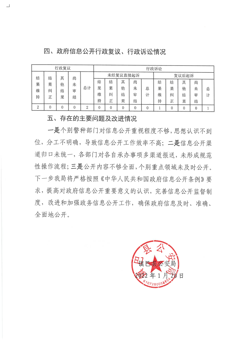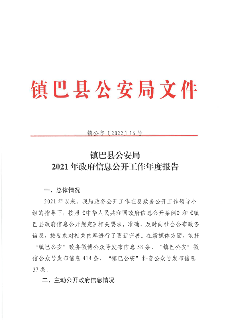 镇巴县公安局2021年政府信息公开工作年度报告