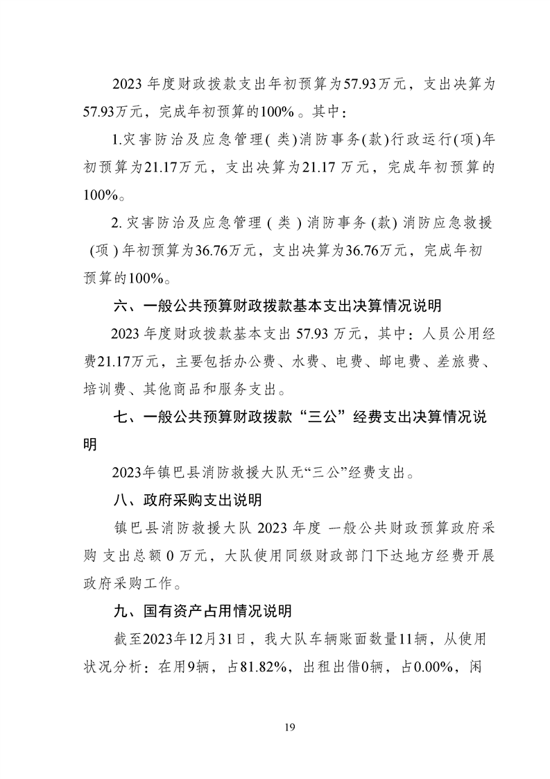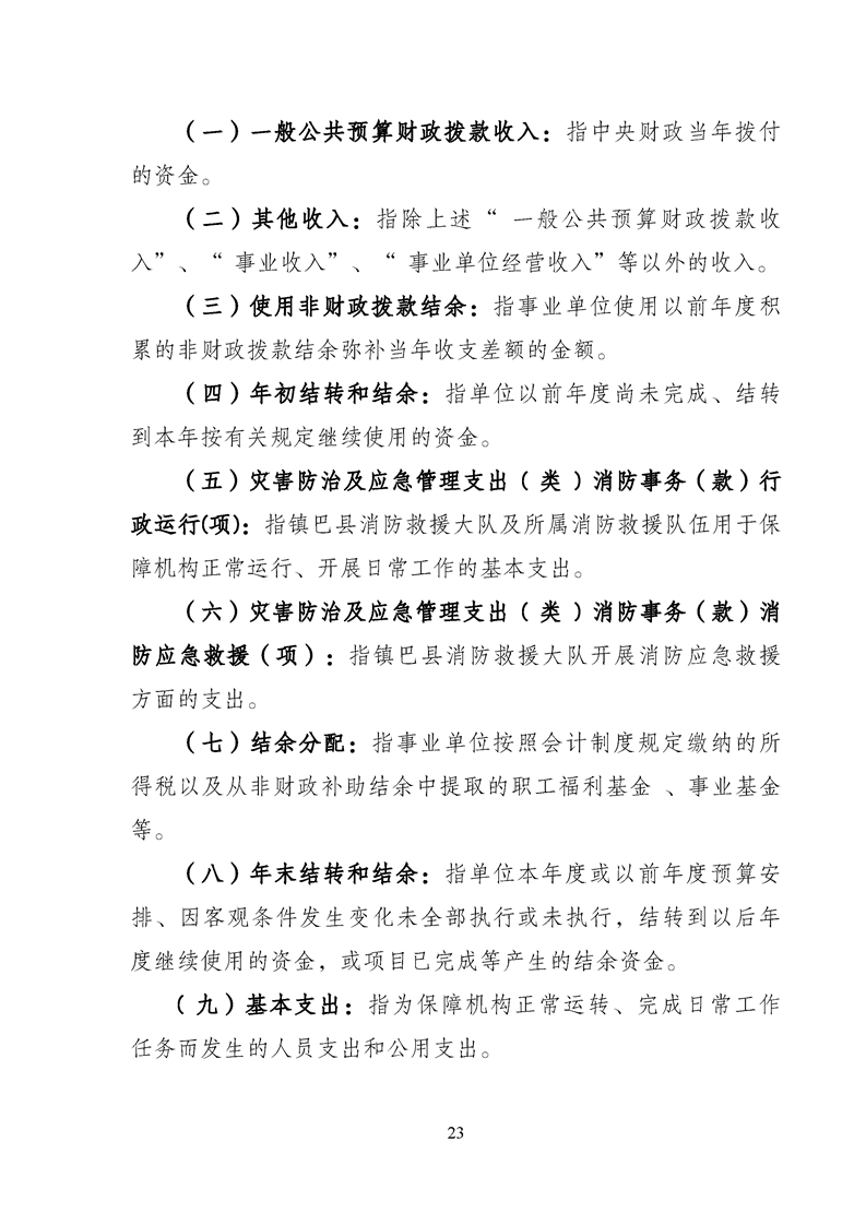 镇巴县消防救援大队2023年度部门决算