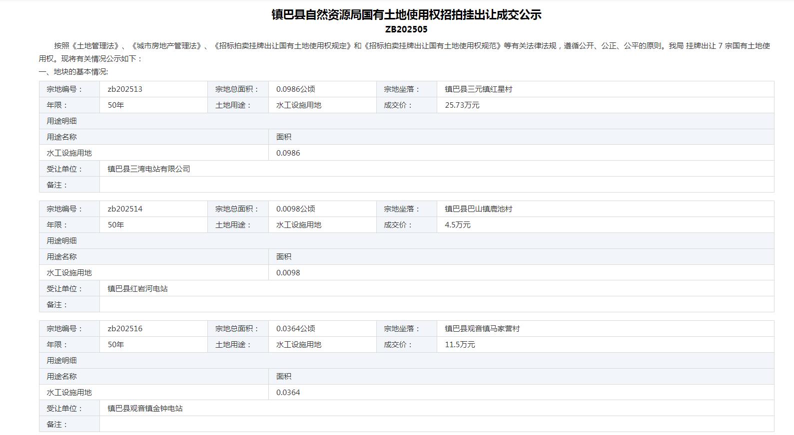 镇巴县自然资源局国有土地使用权招拍挂出让成交公示