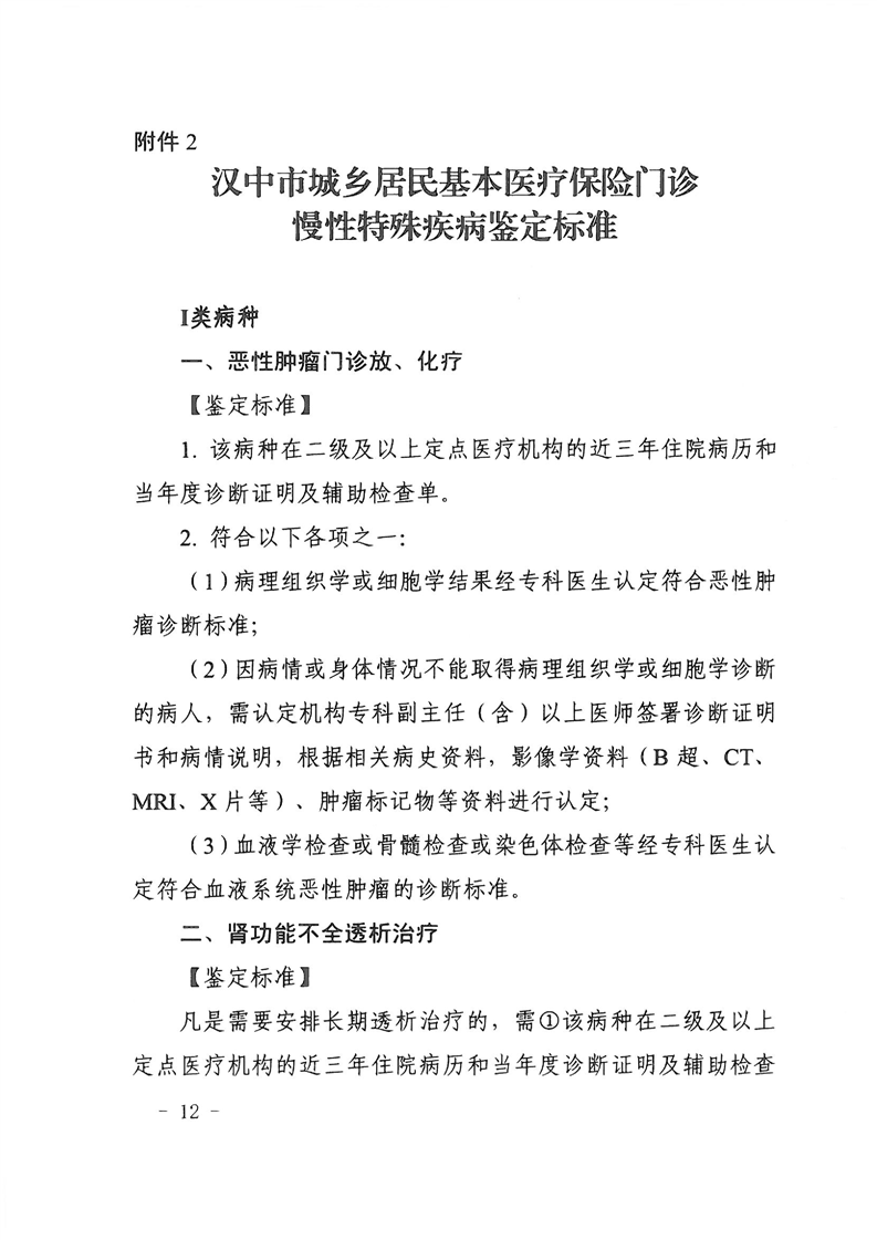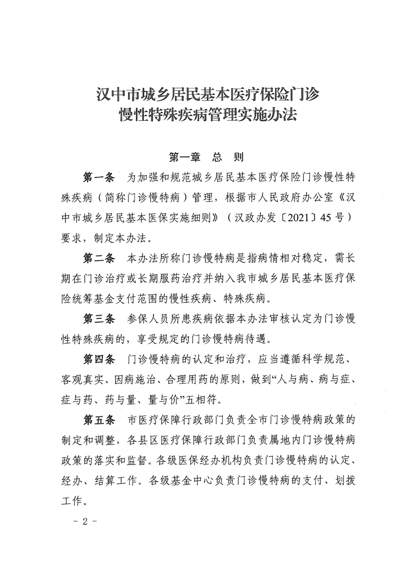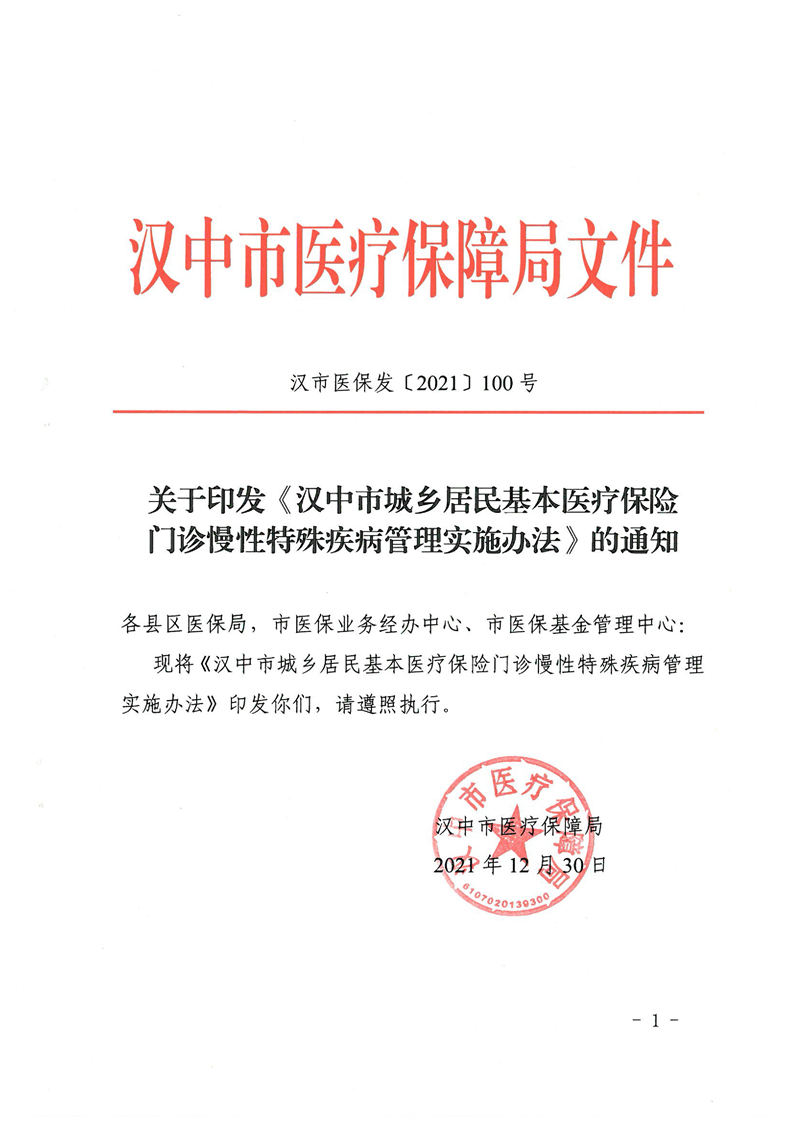 关于转发汉中市城乡居民基本医疗保险门诊慢性特殊疾病管理实施办法的通知