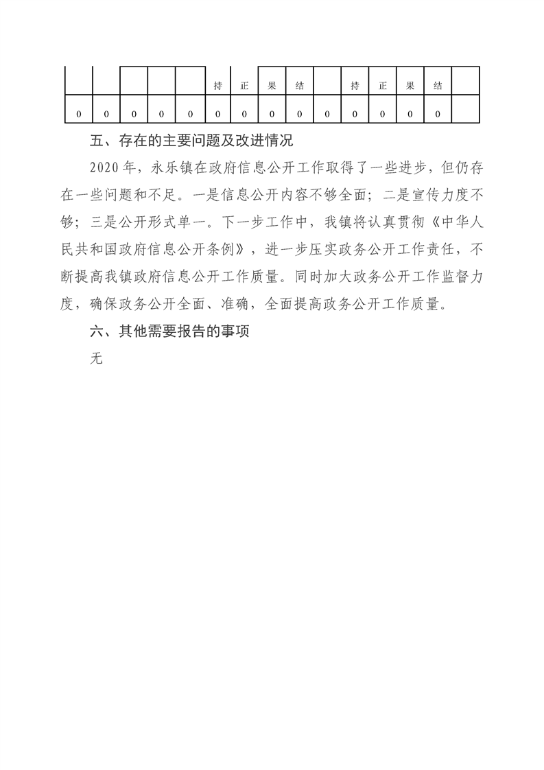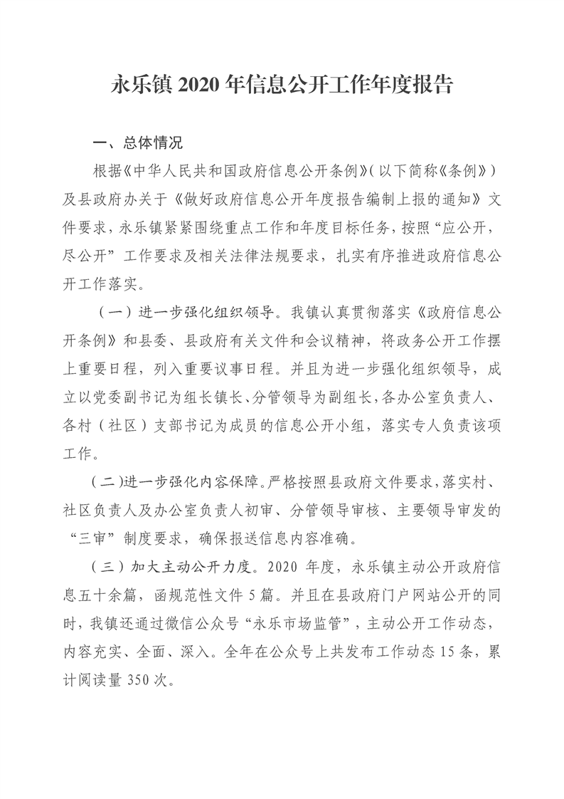 永乐镇2020年度信息公开工作年度报告