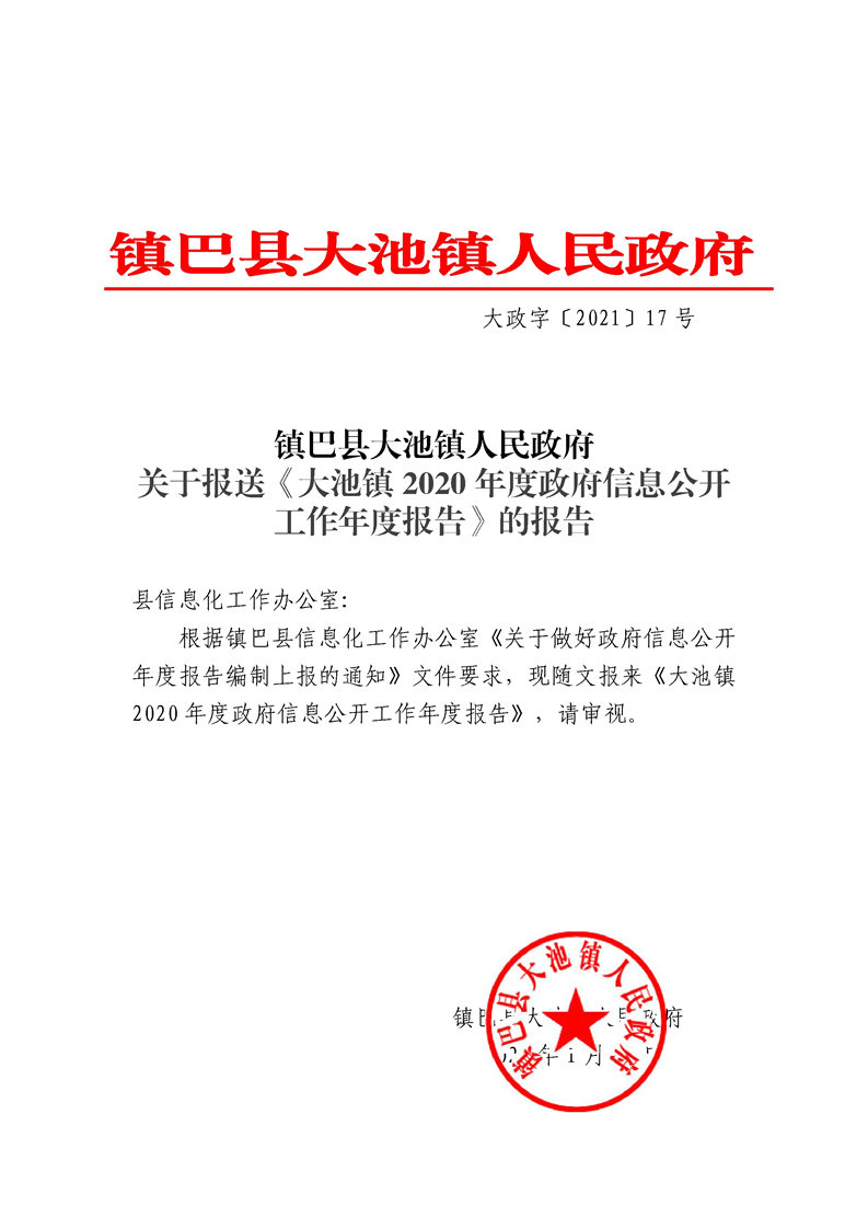 大池镇2020年度信息公开工作年度报告