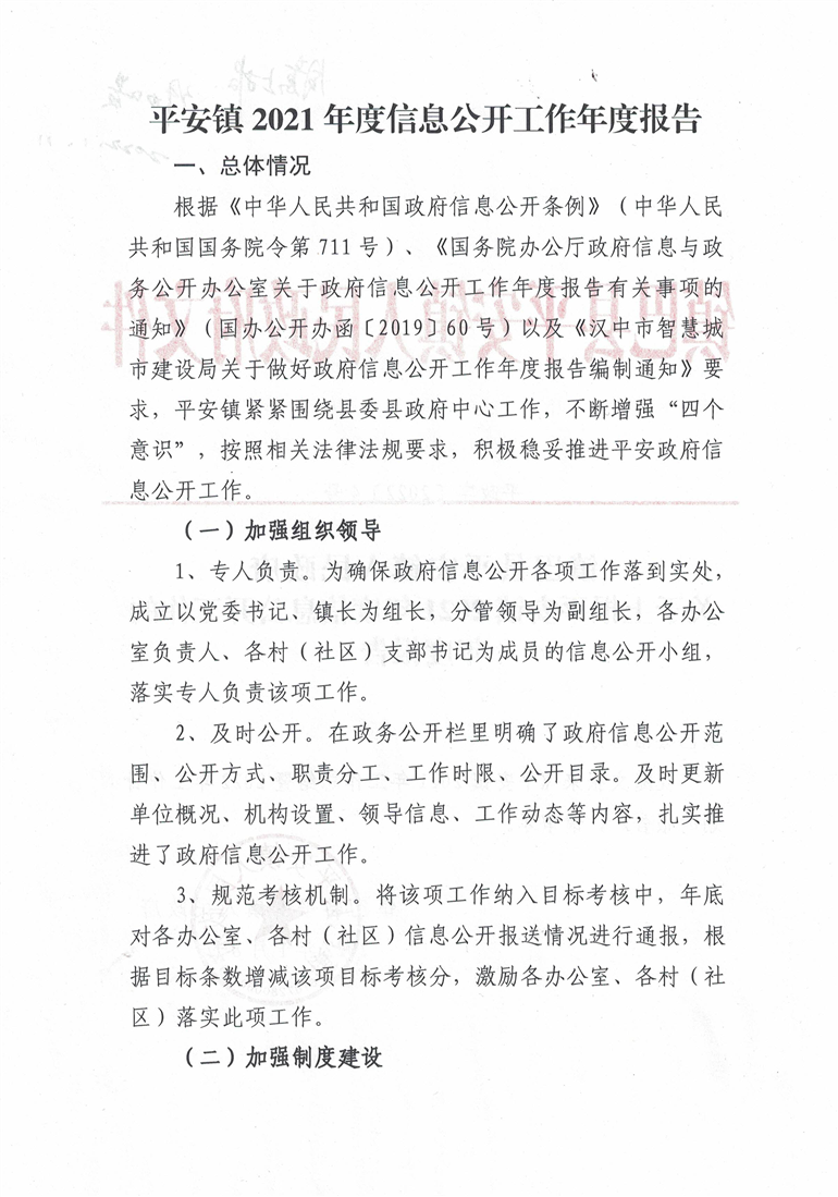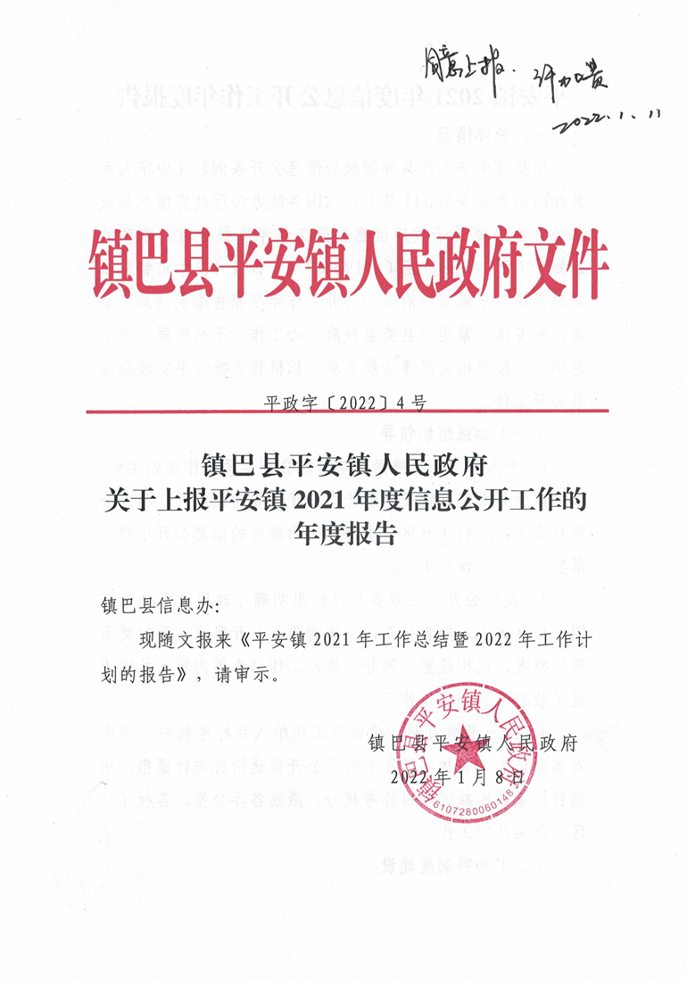 镇巴县平安镇人民政府2021年度政府信息公开年度报告