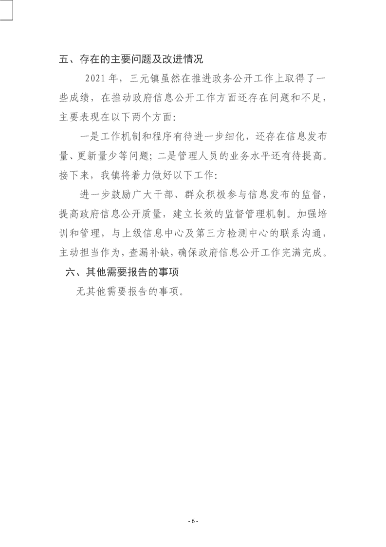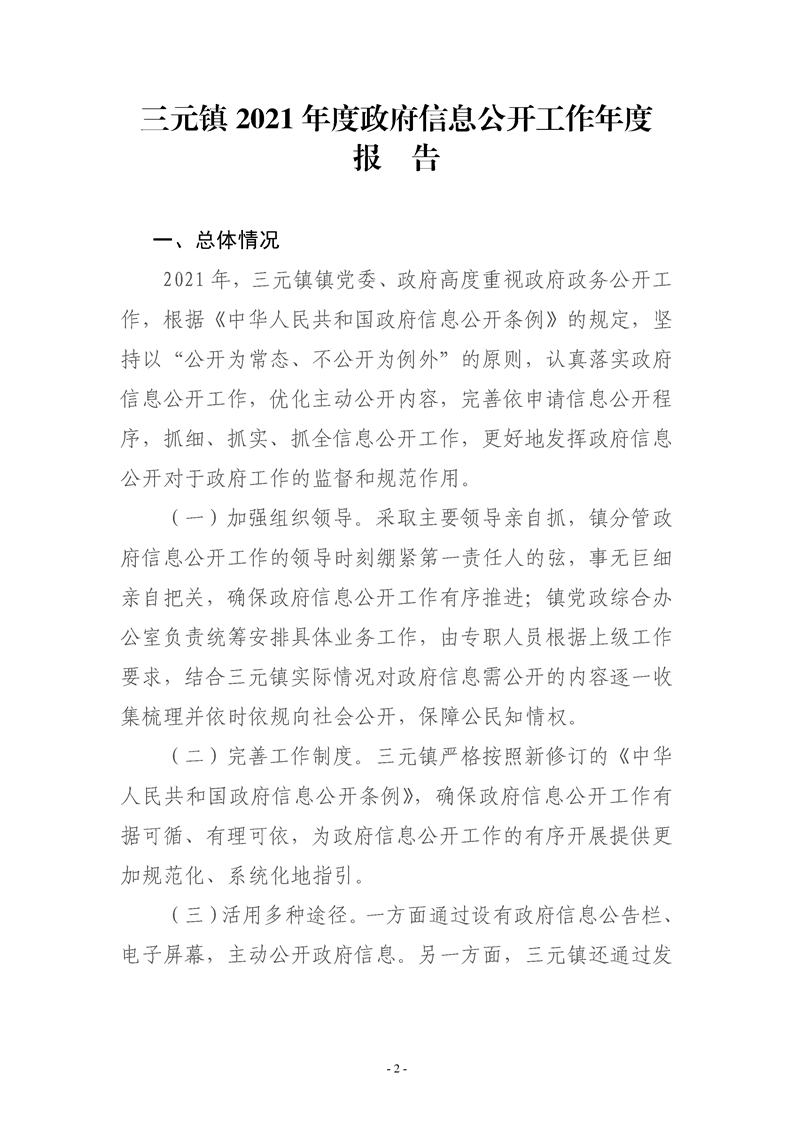 镇巴县三元镇人民政府2021年度政府信息公开年度报告