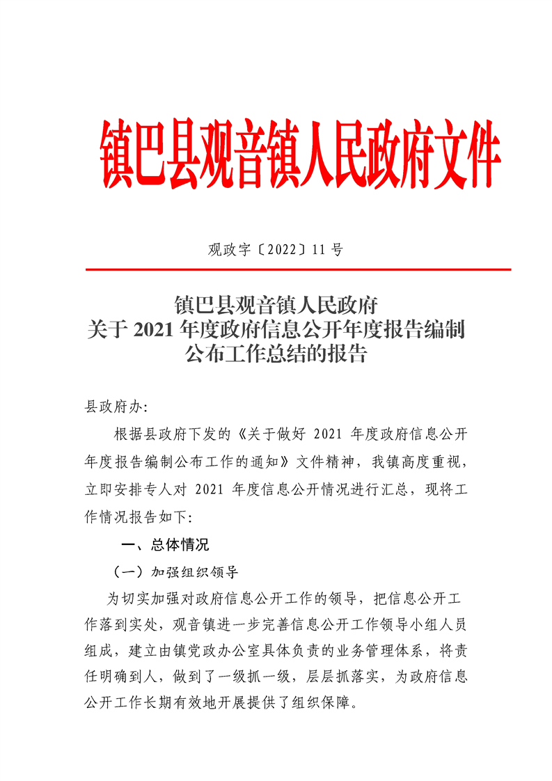镇巴县观音镇人民政府2021年度政府信息公开年度报告