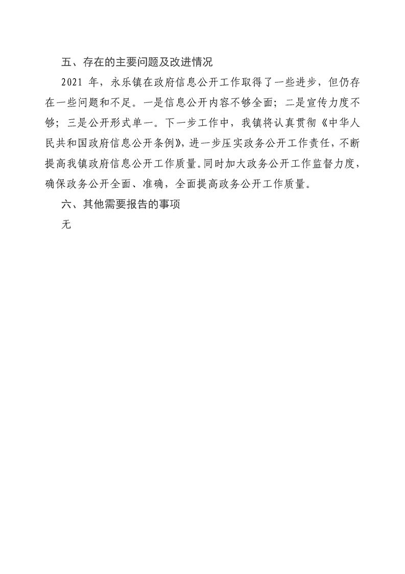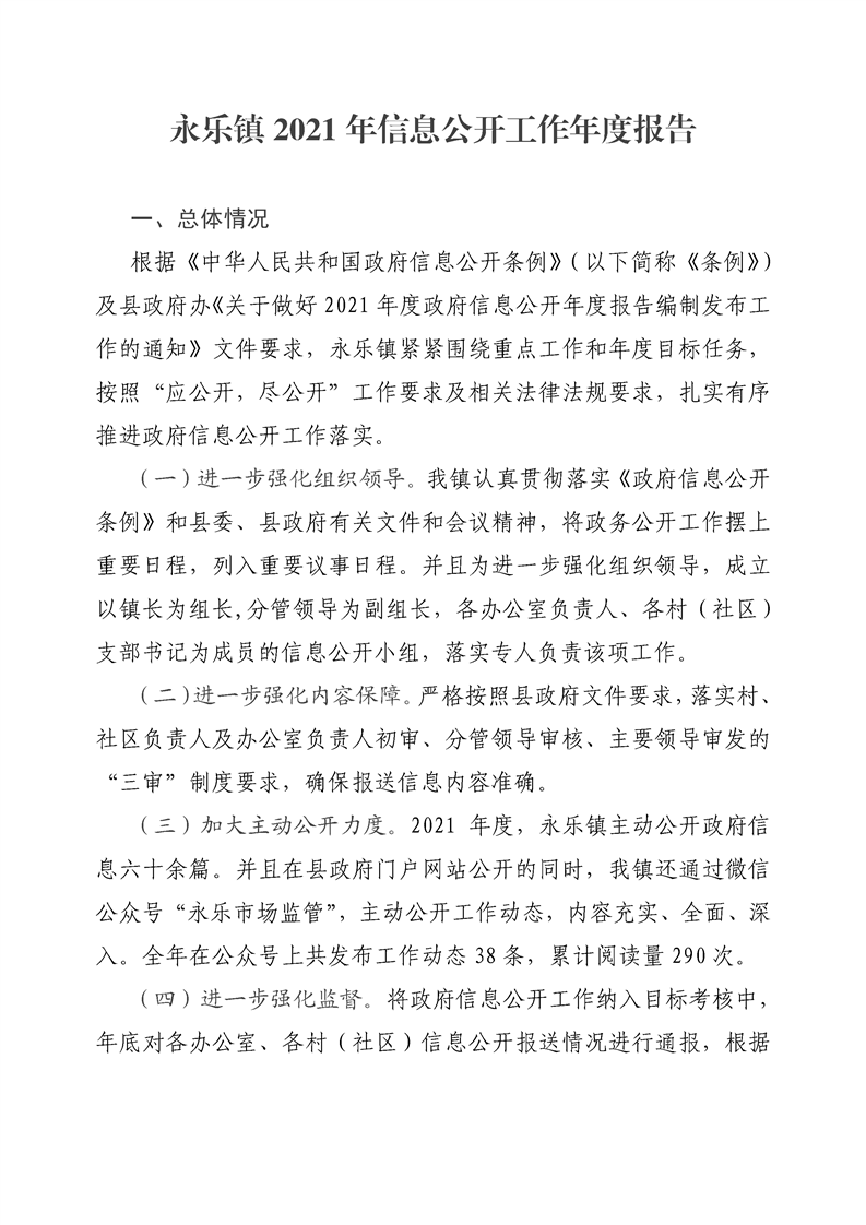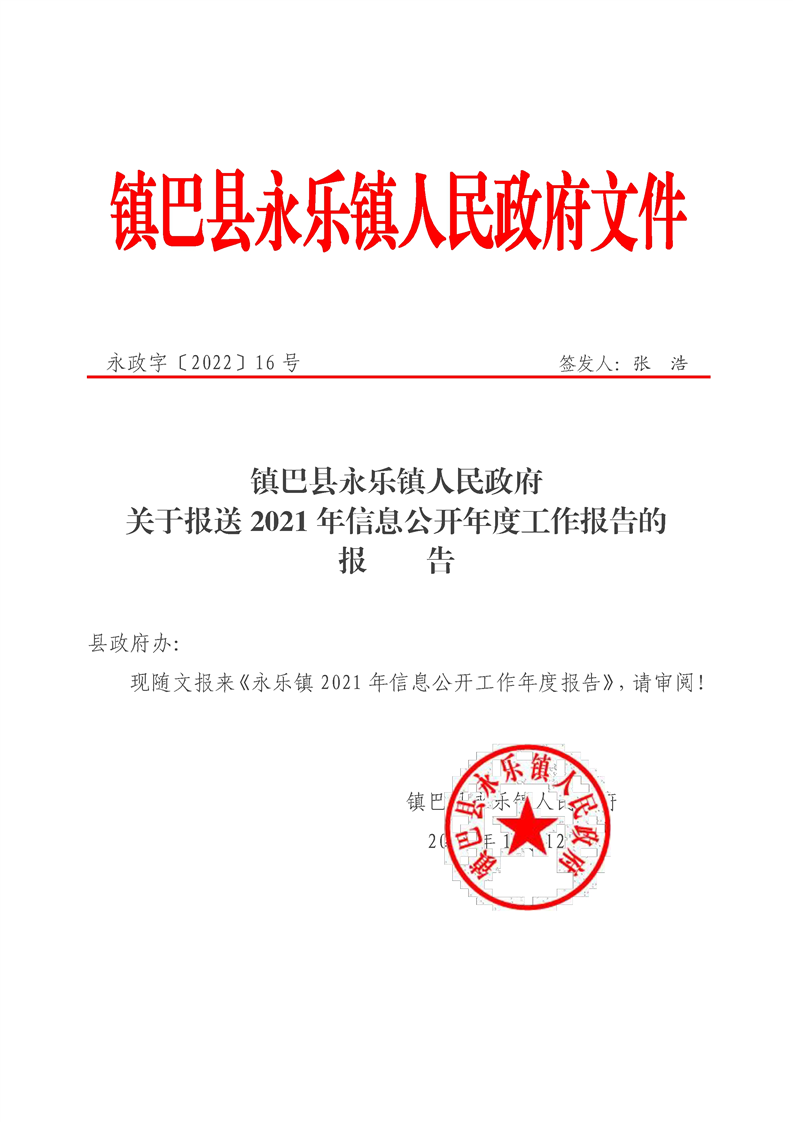 镇巴县永乐镇人民政府2021年度政府信息公开年度报告