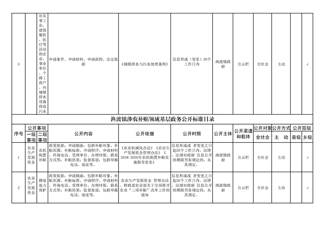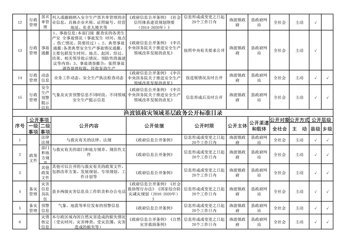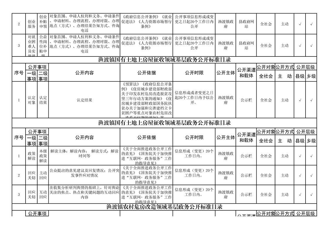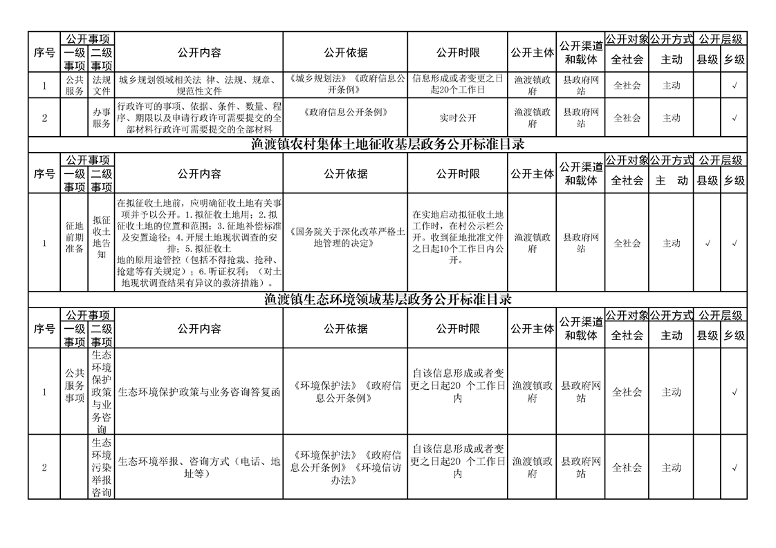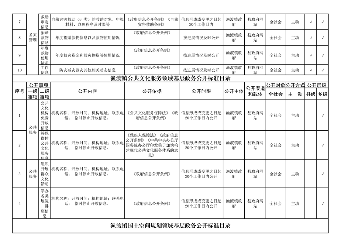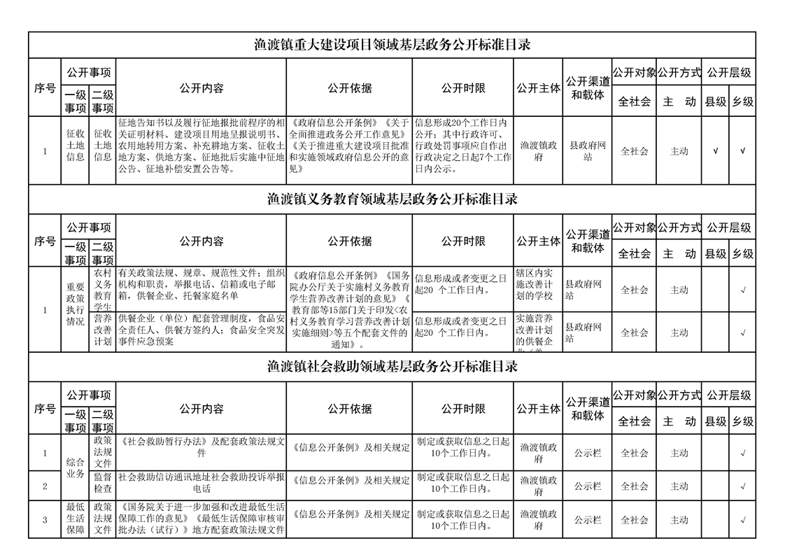 渔渡镇政务公开标准目录