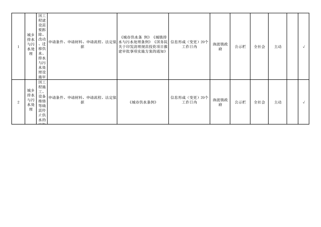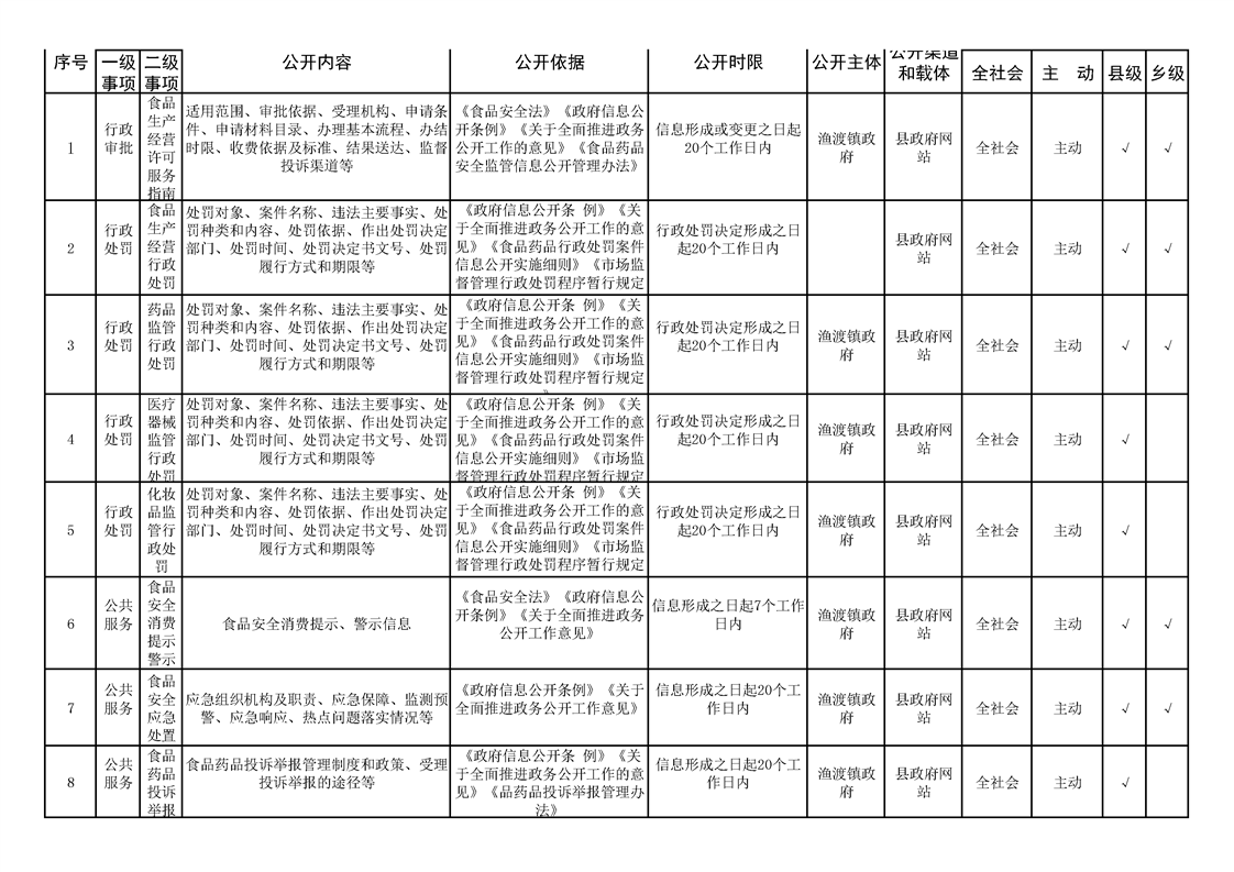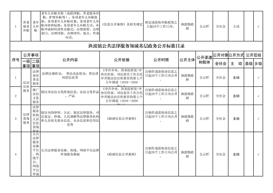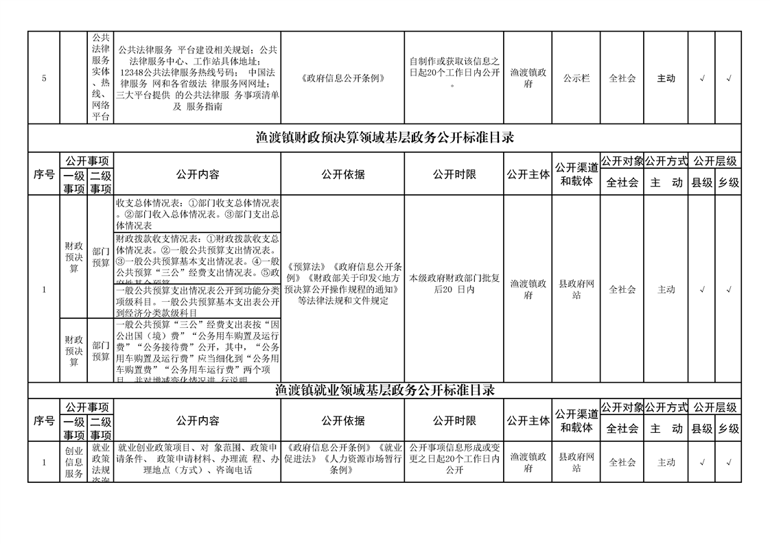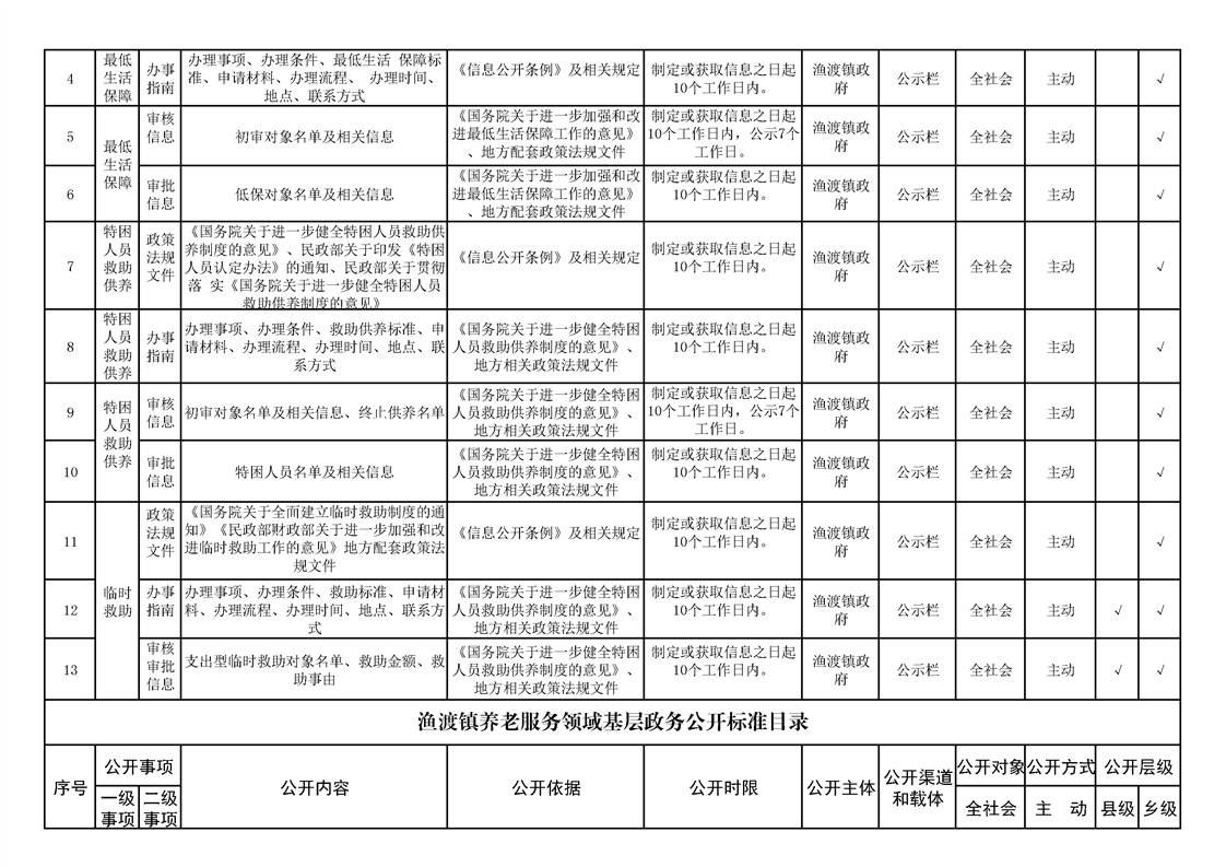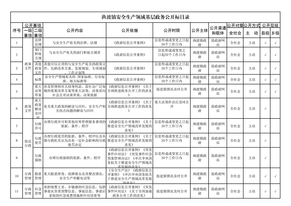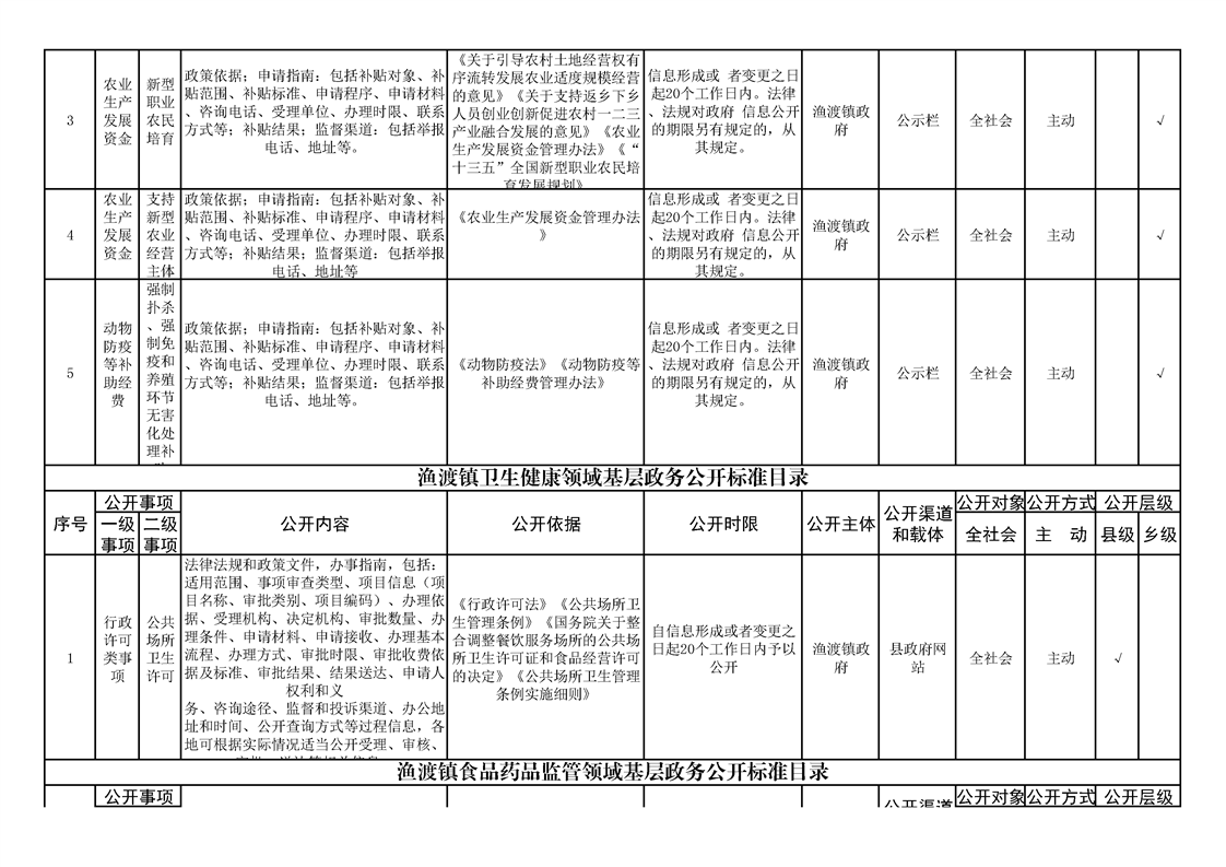 渔渡镇政务公开标准目录