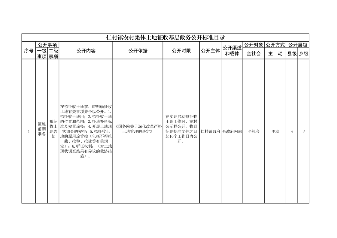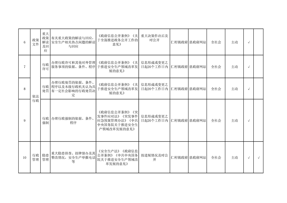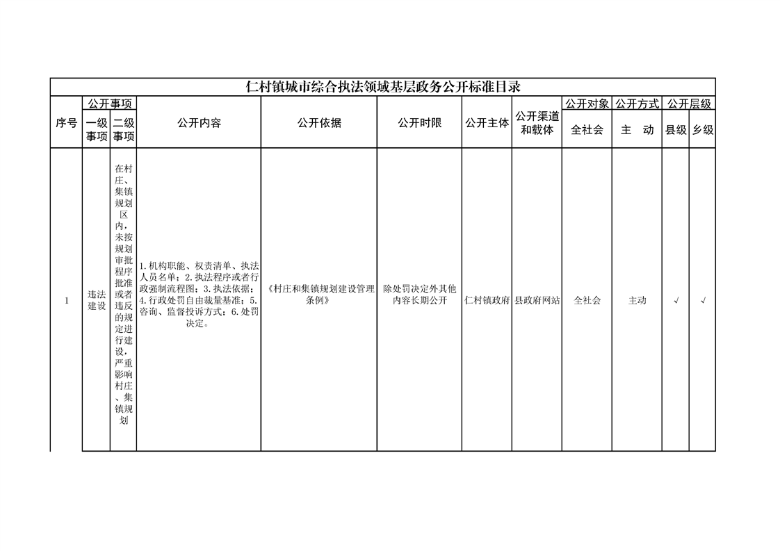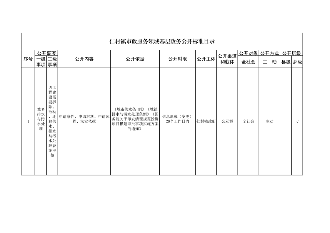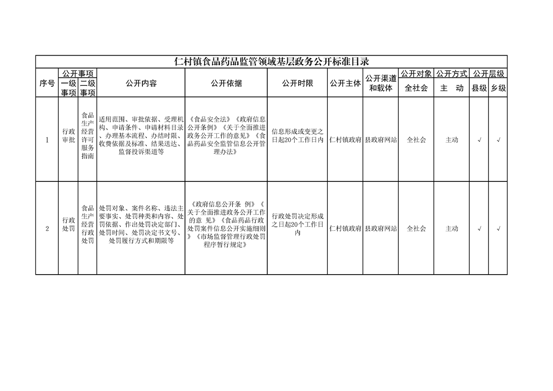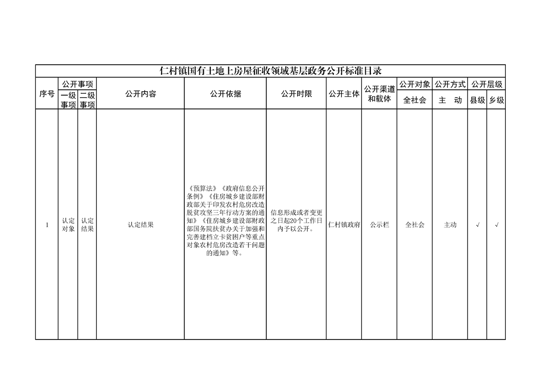 仁村镇政务公开标准目录