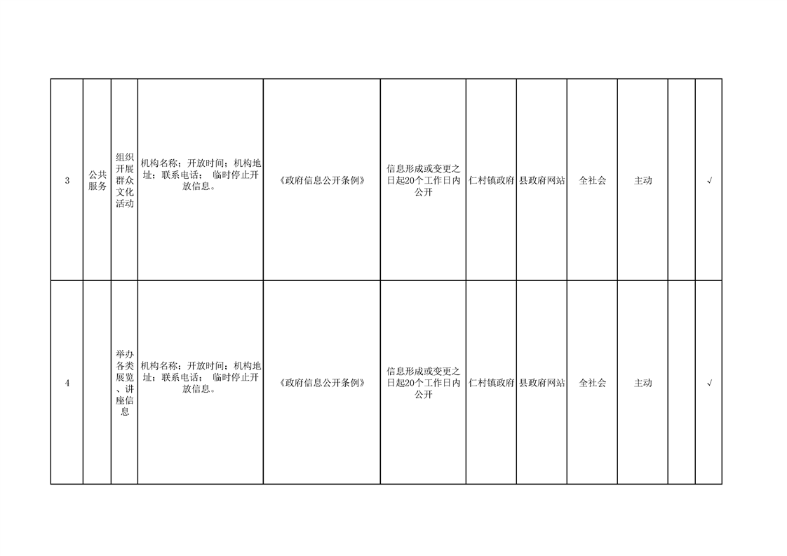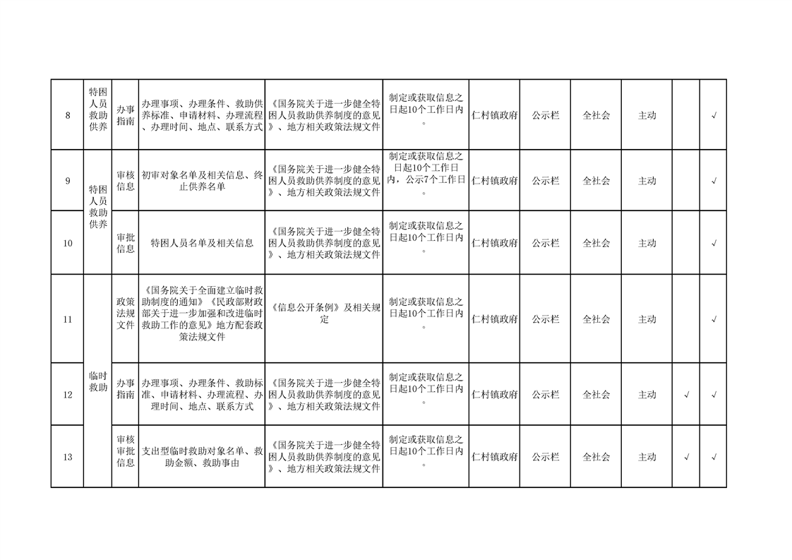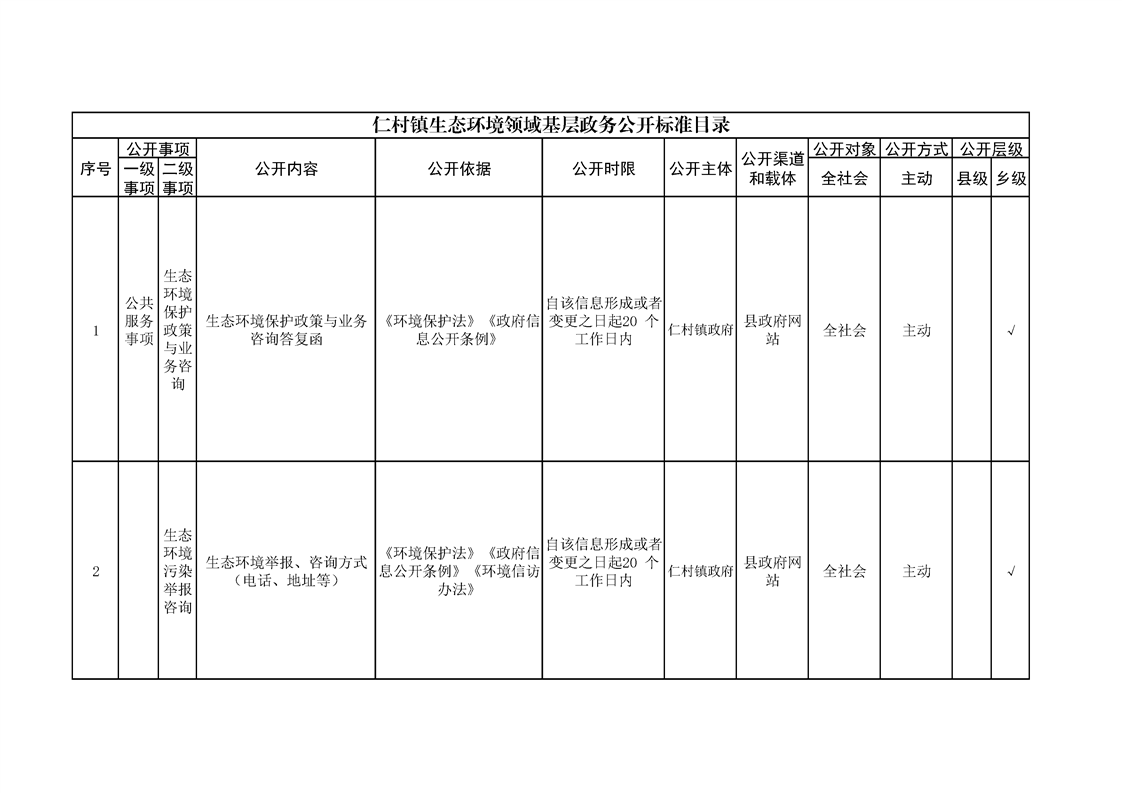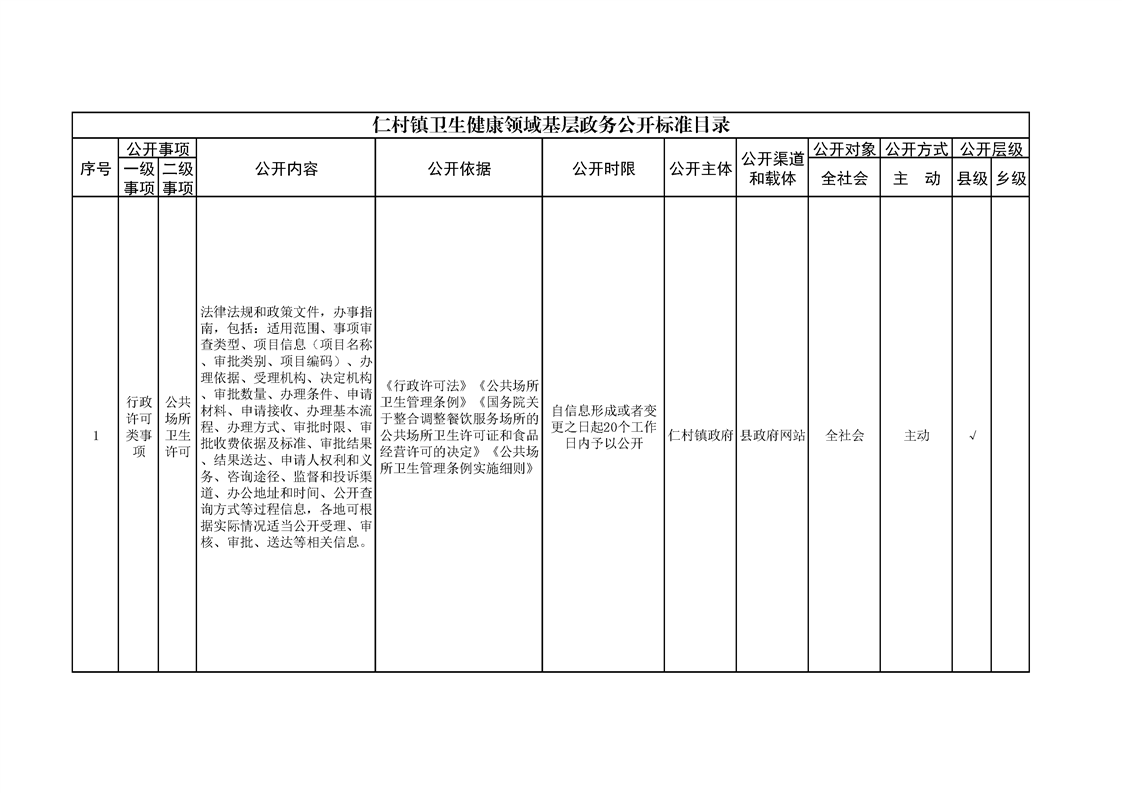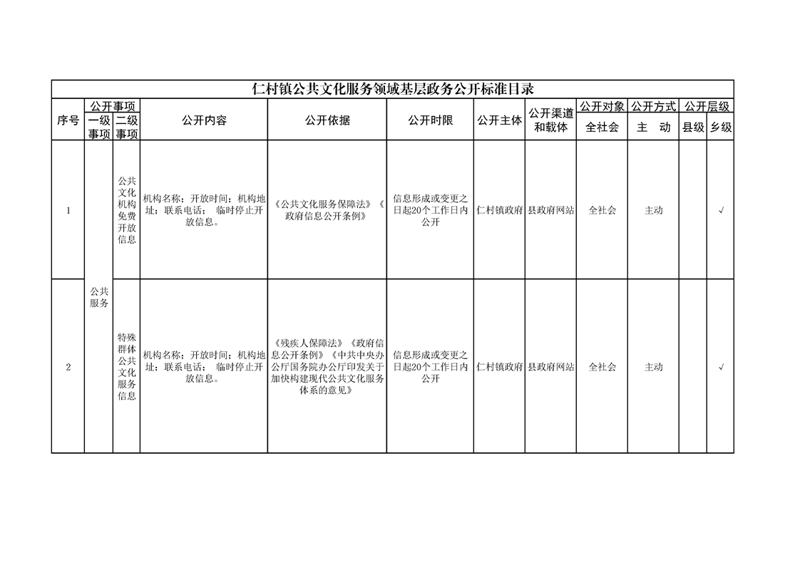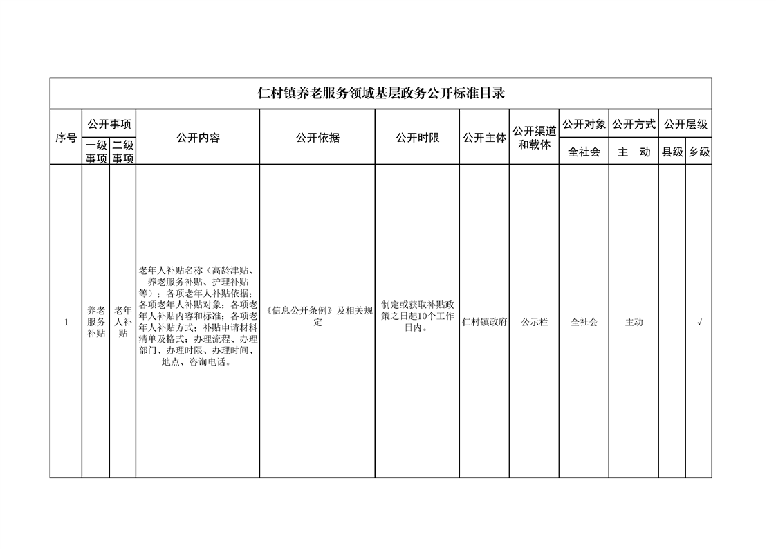 仁村镇政务公开标准目录