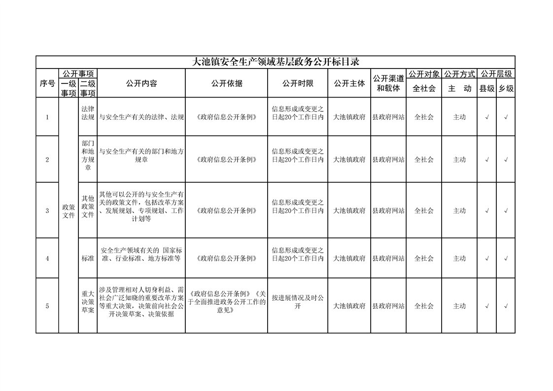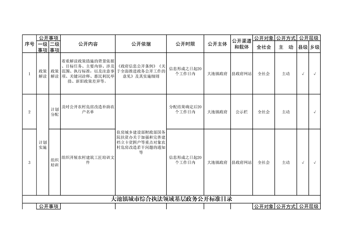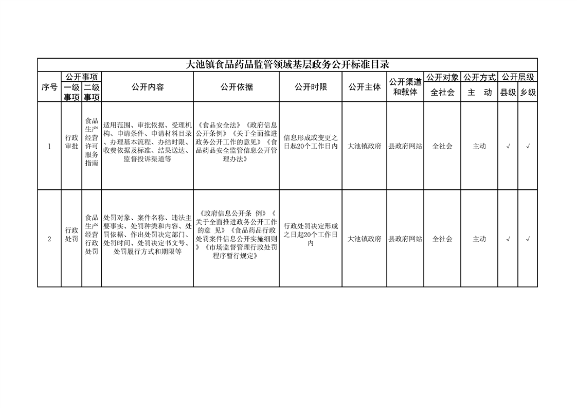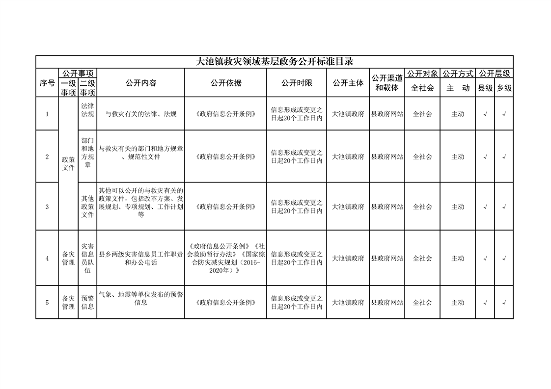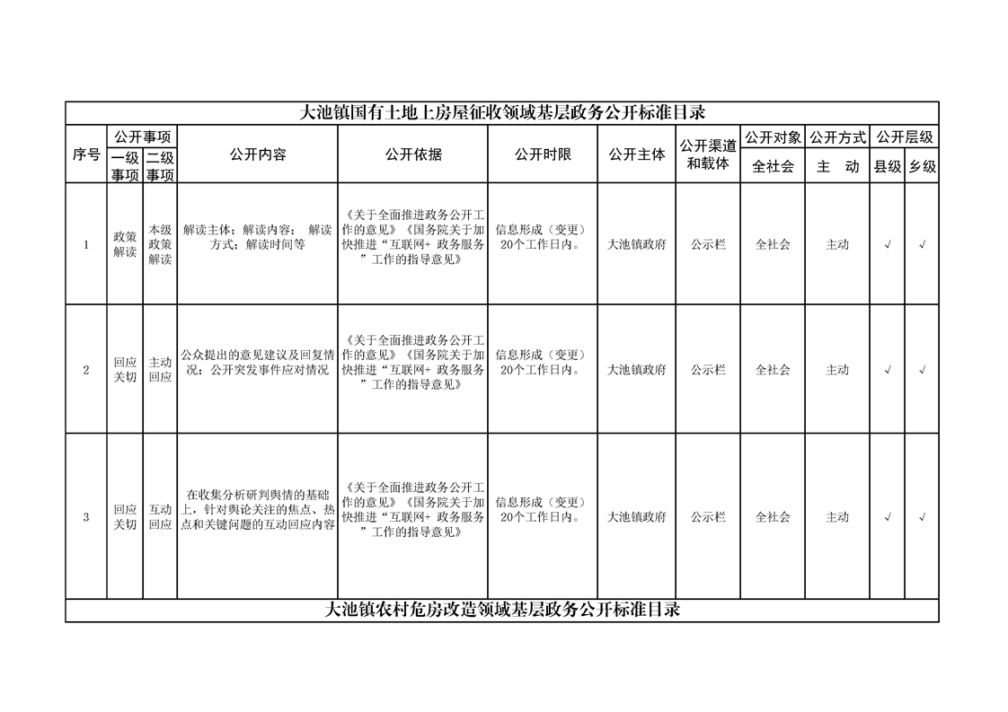 大池镇政务公开标准目录