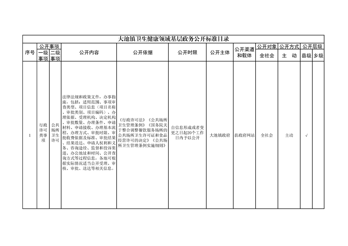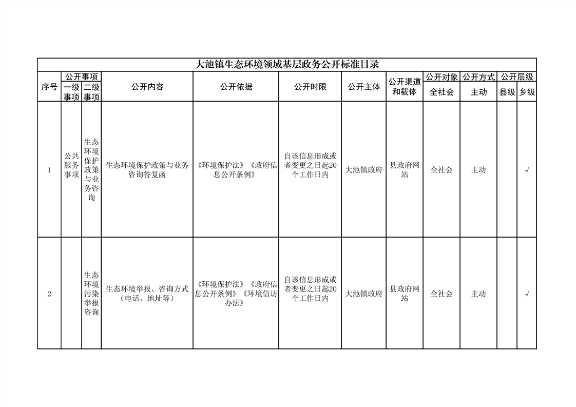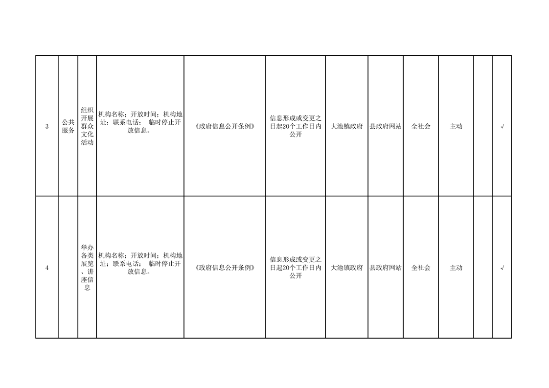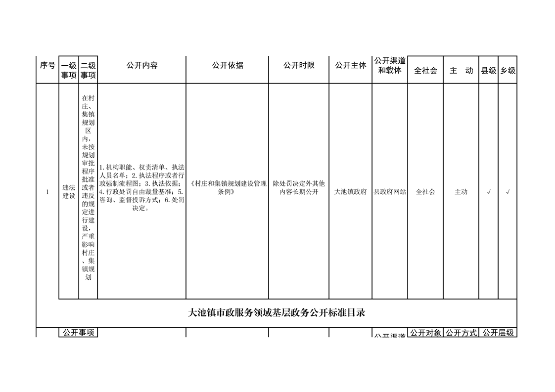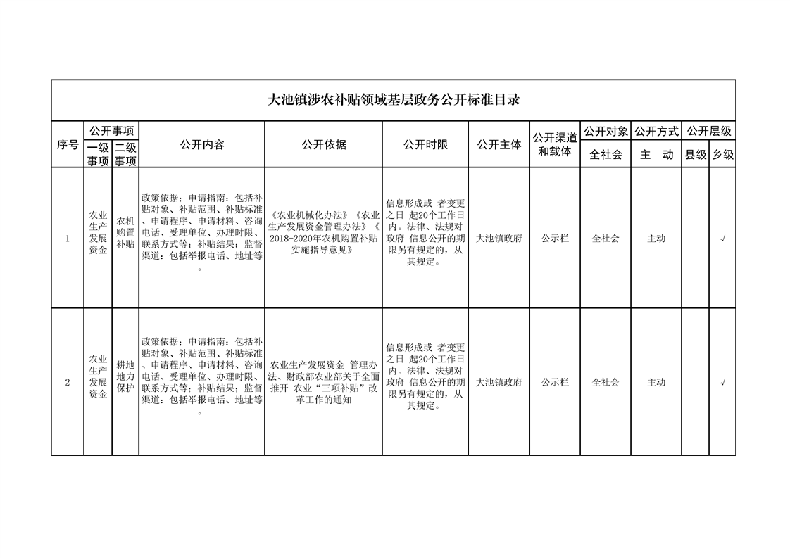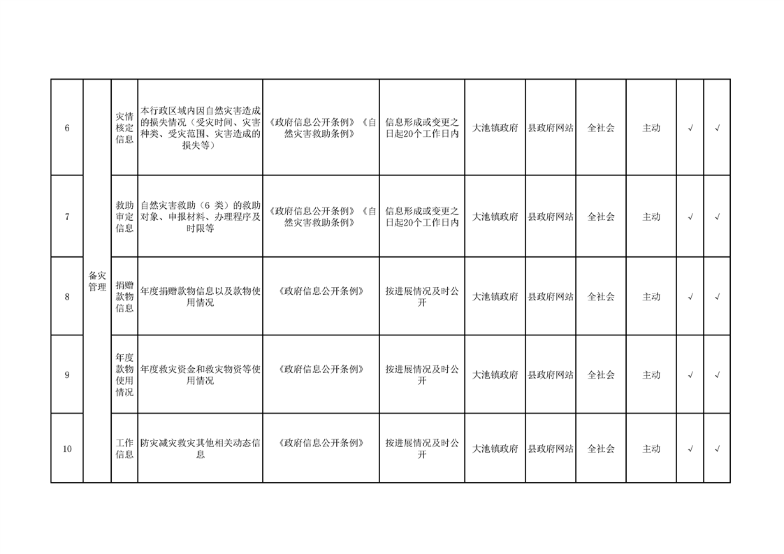 大池镇政务公开标准目录