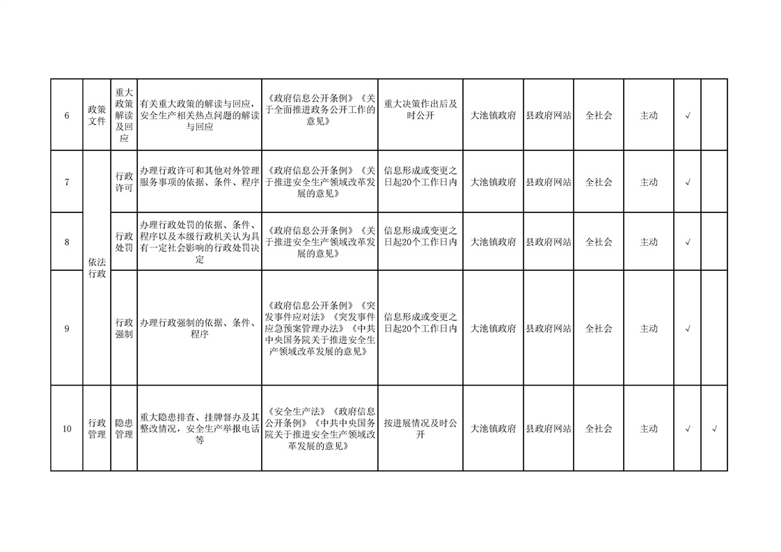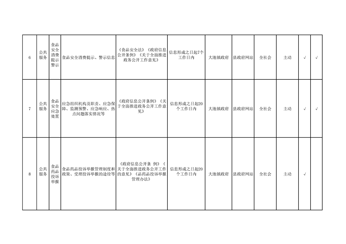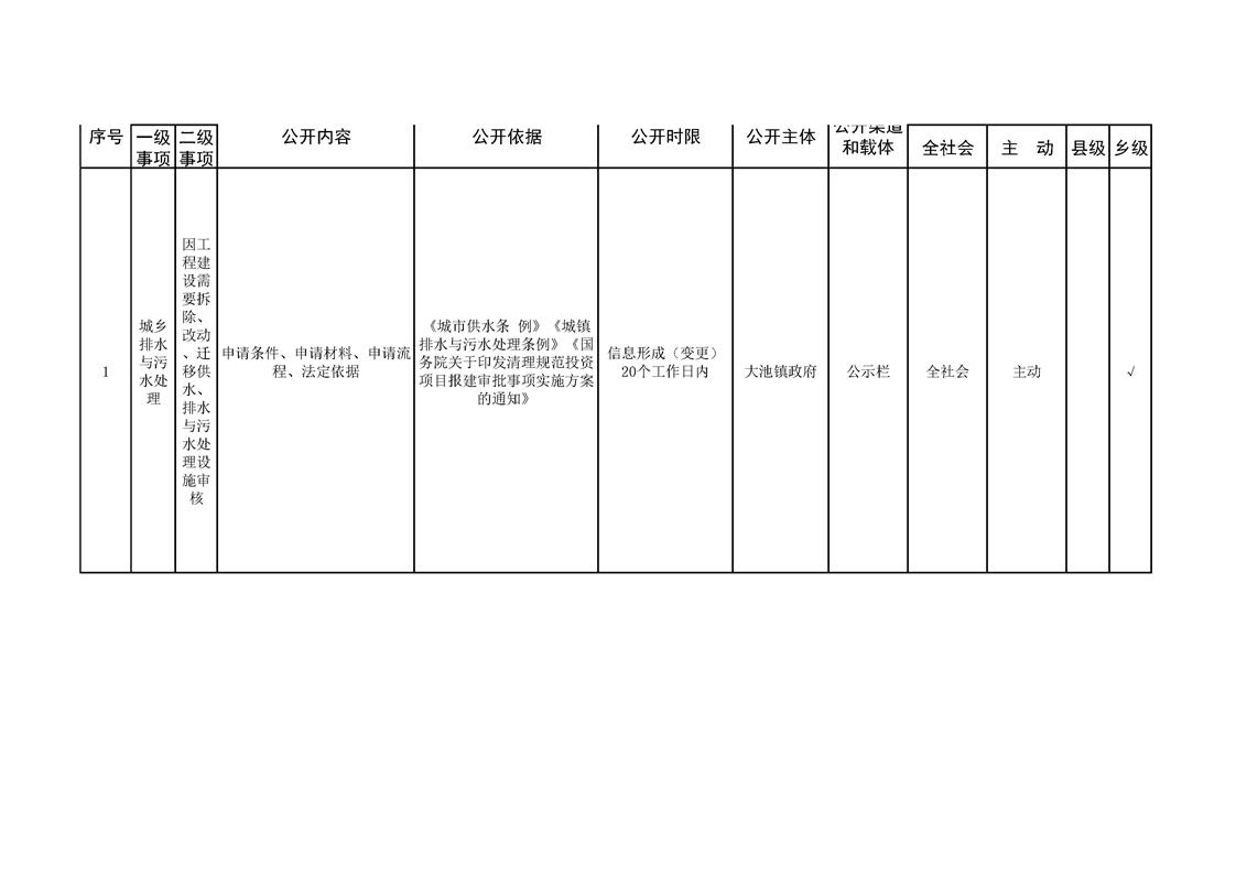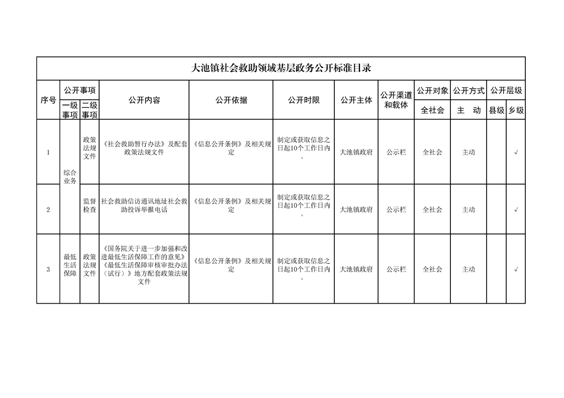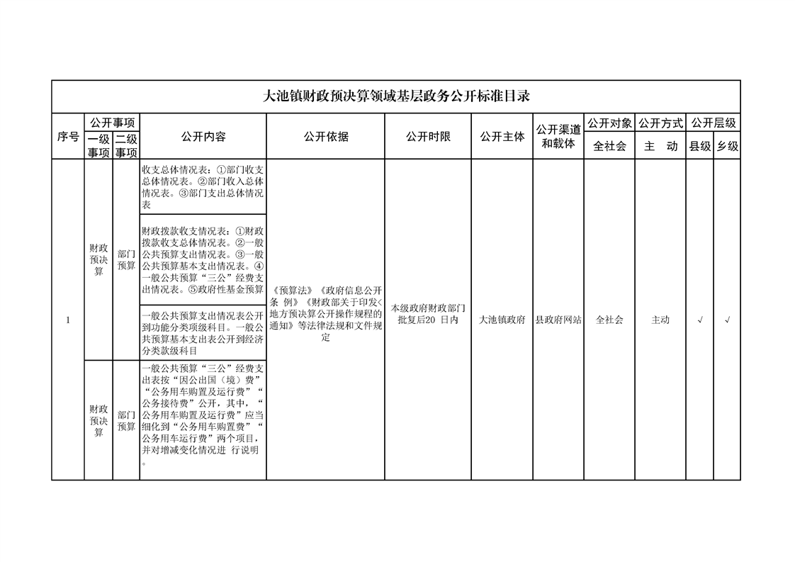 大池镇政务公开标准目录