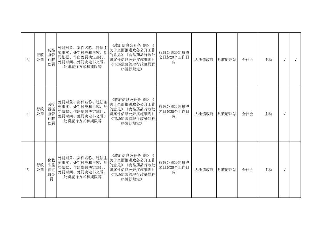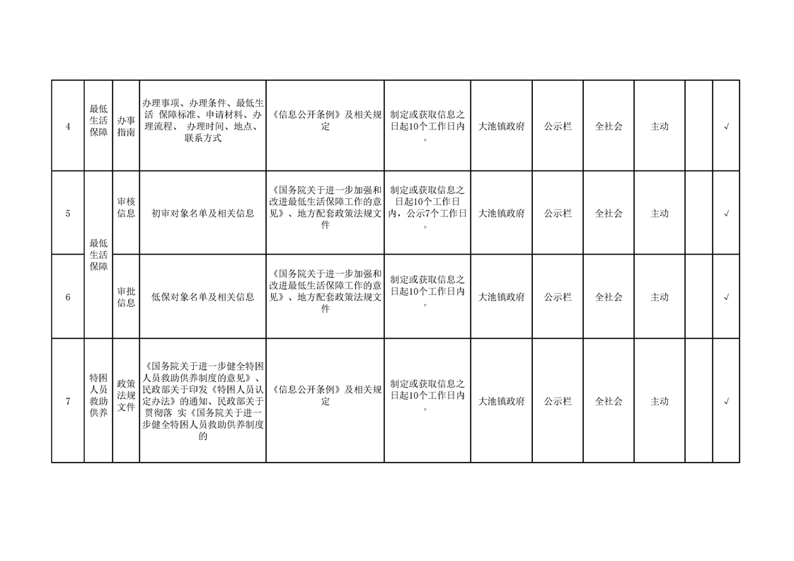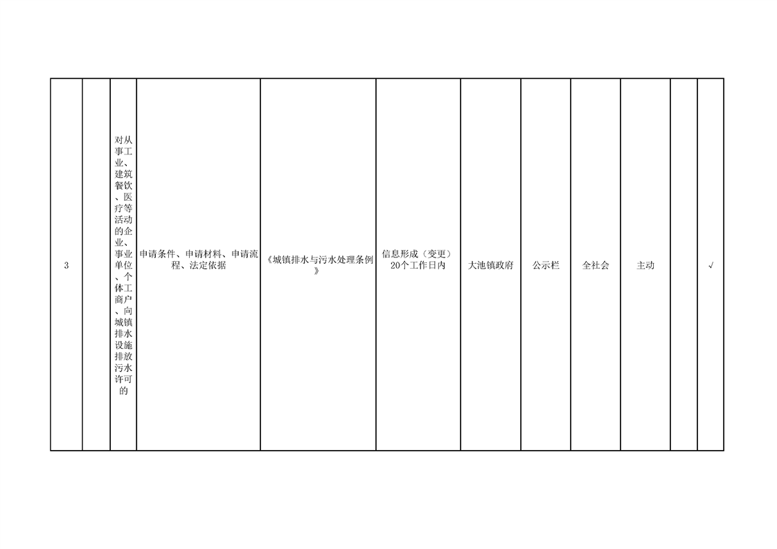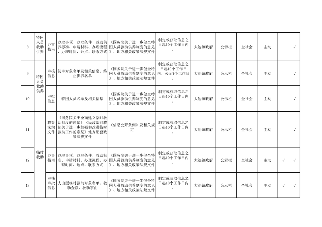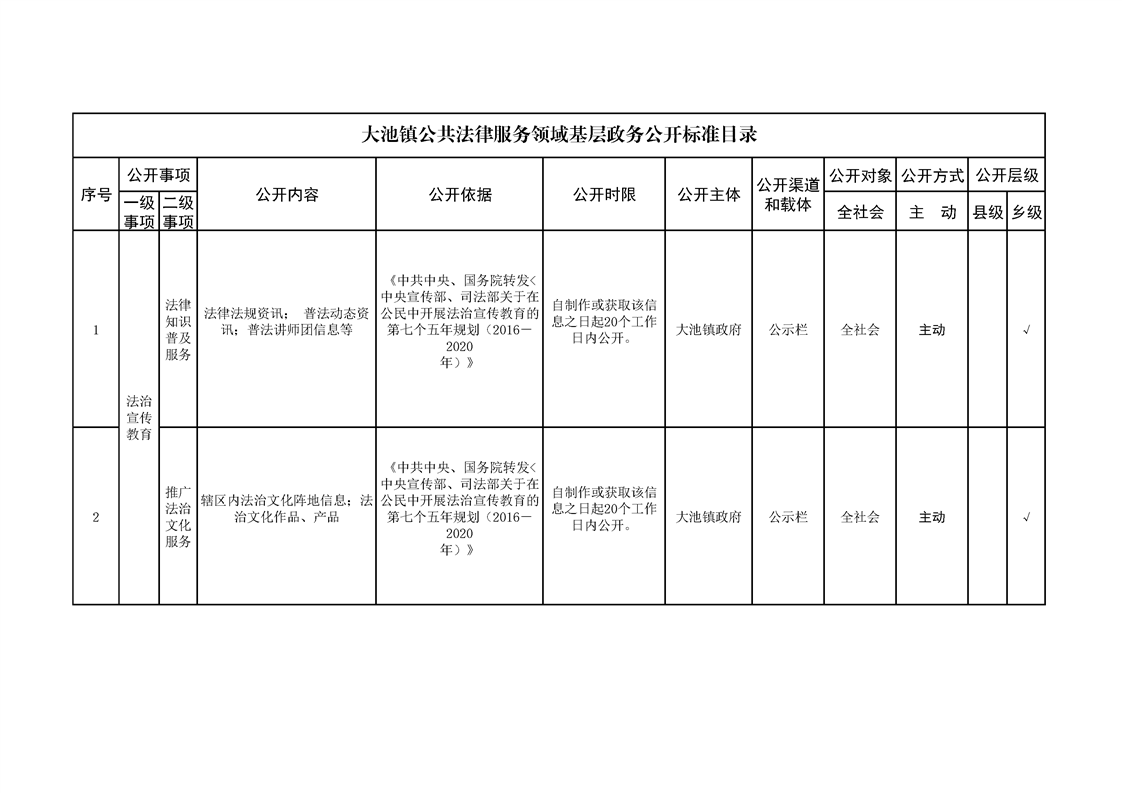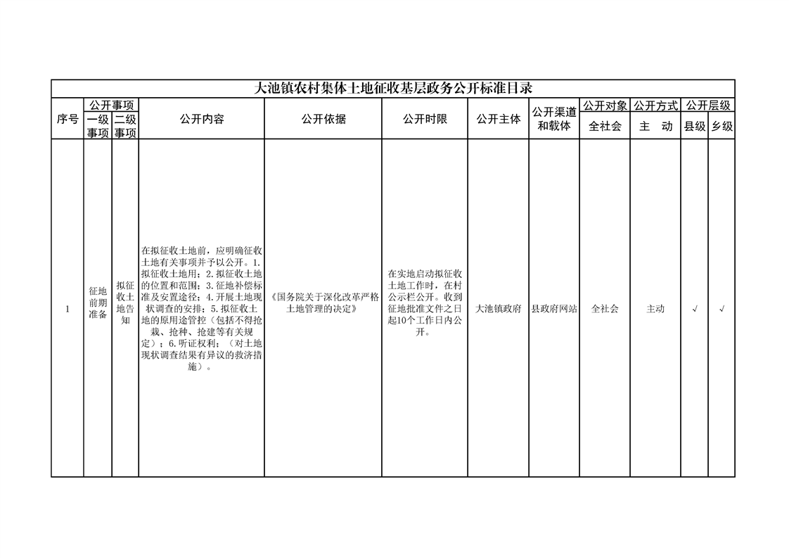 大池镇政务公开标准目录