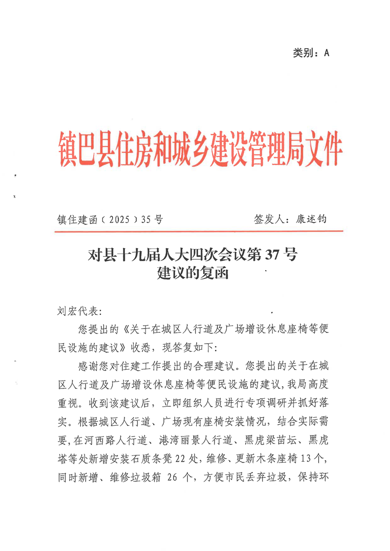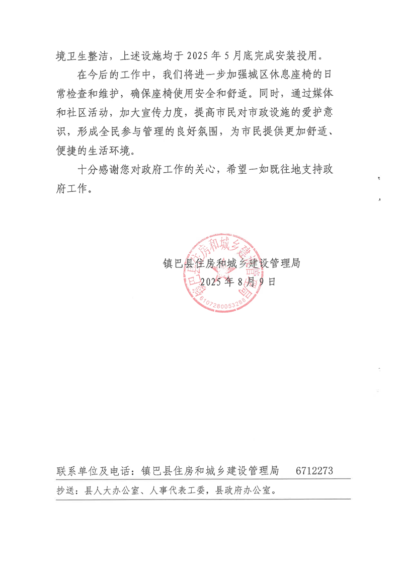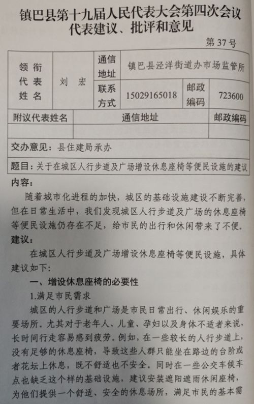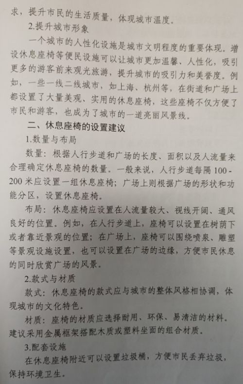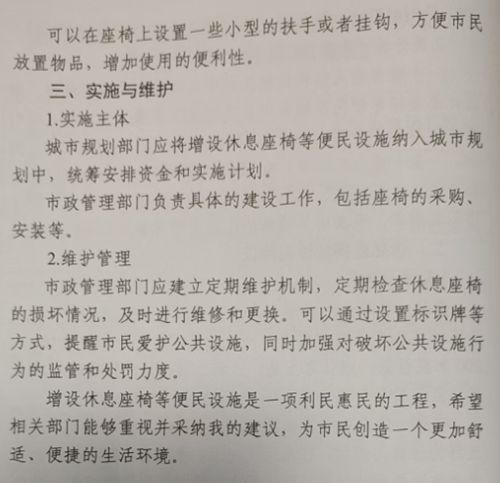 关于在城区人行步道及广场增设休息座椅等便民设施的建议