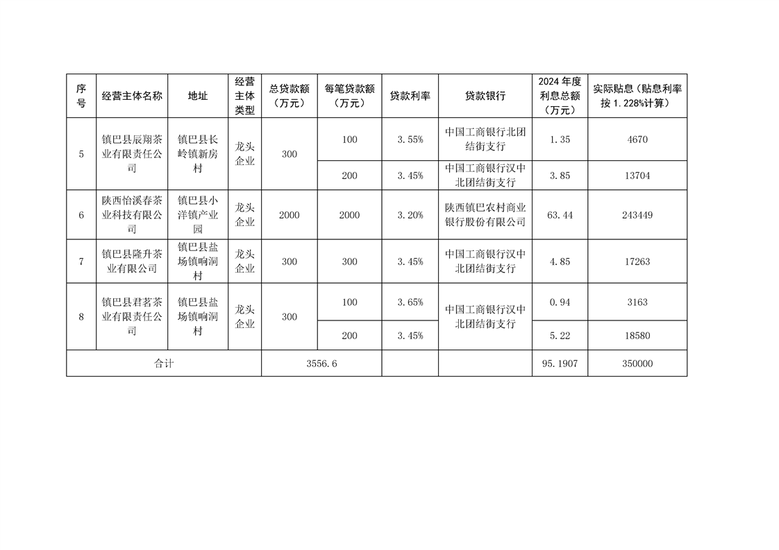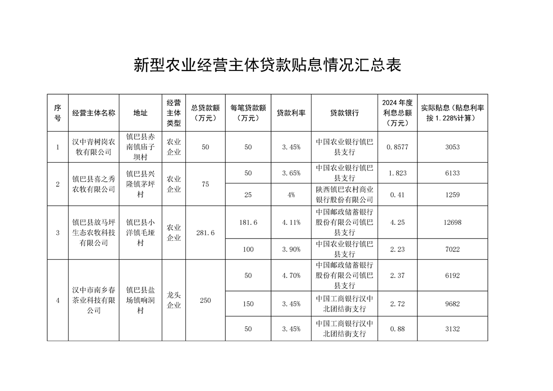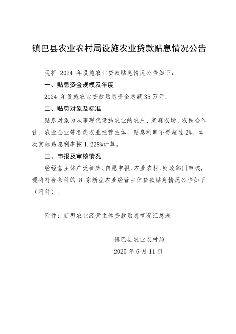镇巴县农业农村局设施农业贷款贴息情况公告