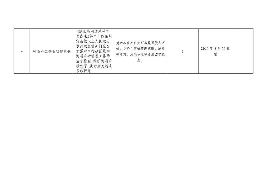 水利局涉企行政检查事项梳理表