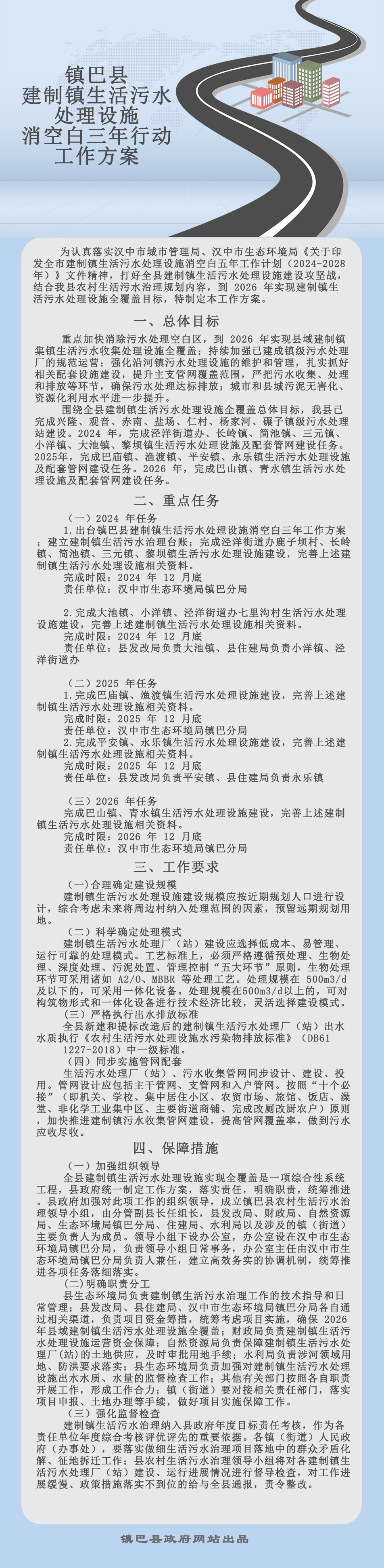 一图看懂|镇巴县建制镇生活污水处理设施消空白三年行动工作方案