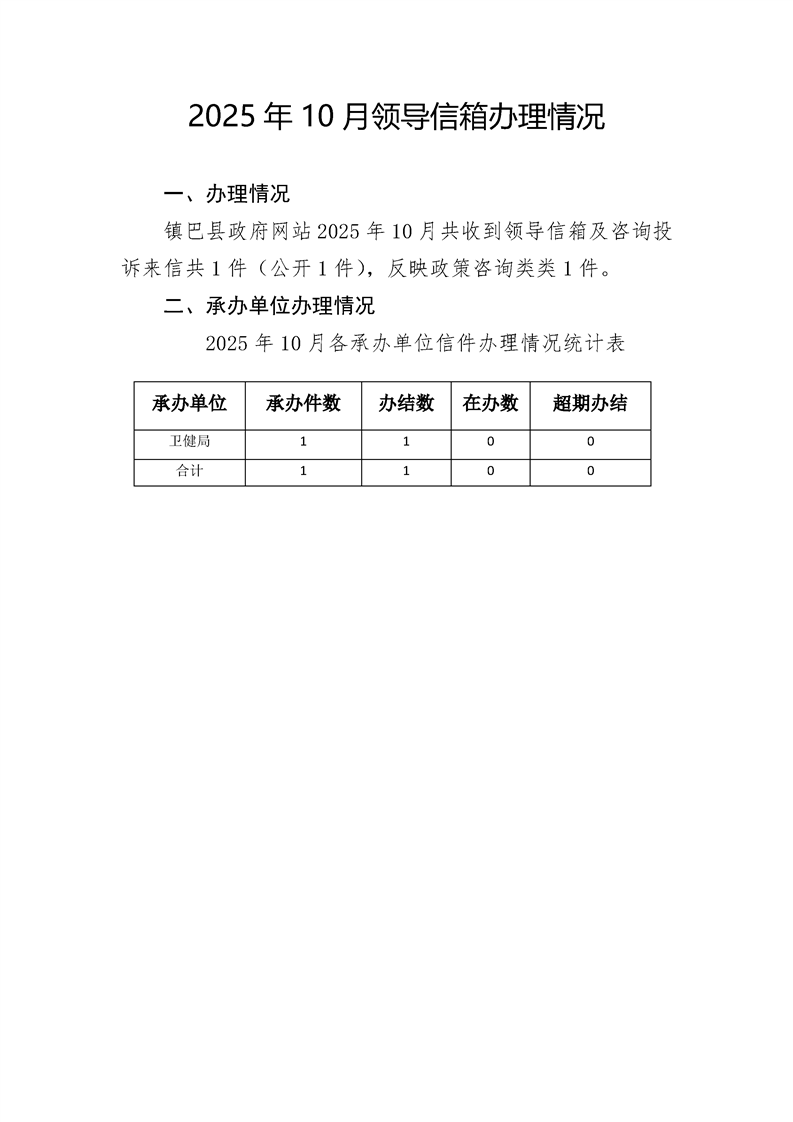 2025年10月领导信箱办理情况