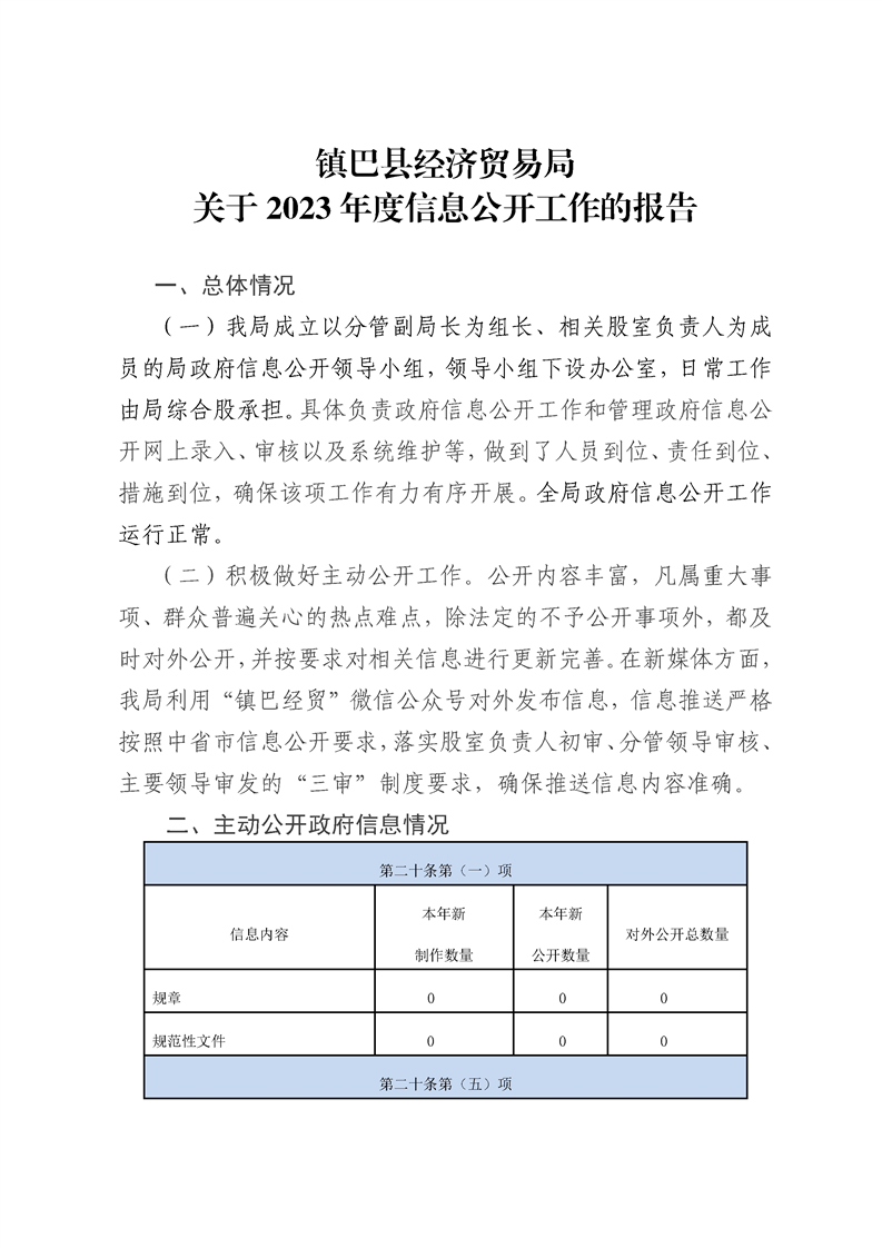 镇巴县经济贸易局关于2023年度信息公开工作的报告