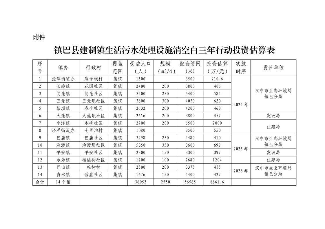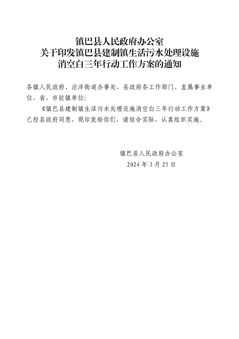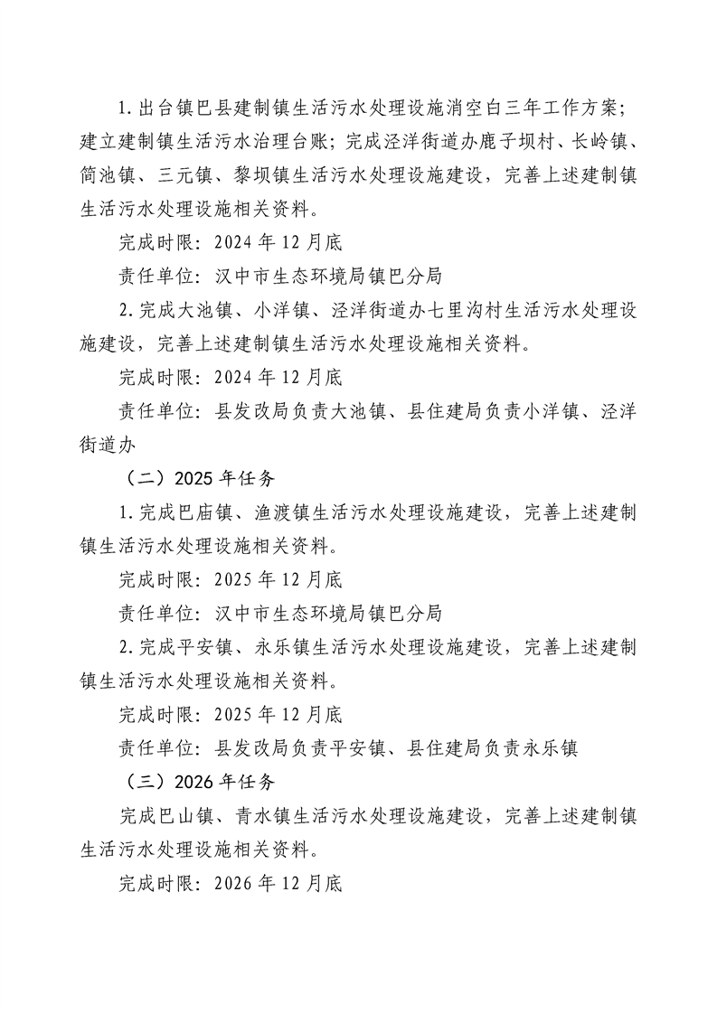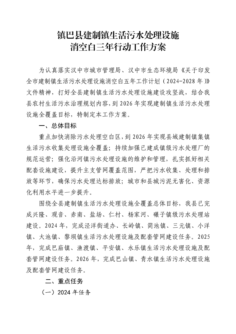 一图看懂|《关于印发镇巴县建制镇生活污水处理设施消空白三年行动工作方案的通知》